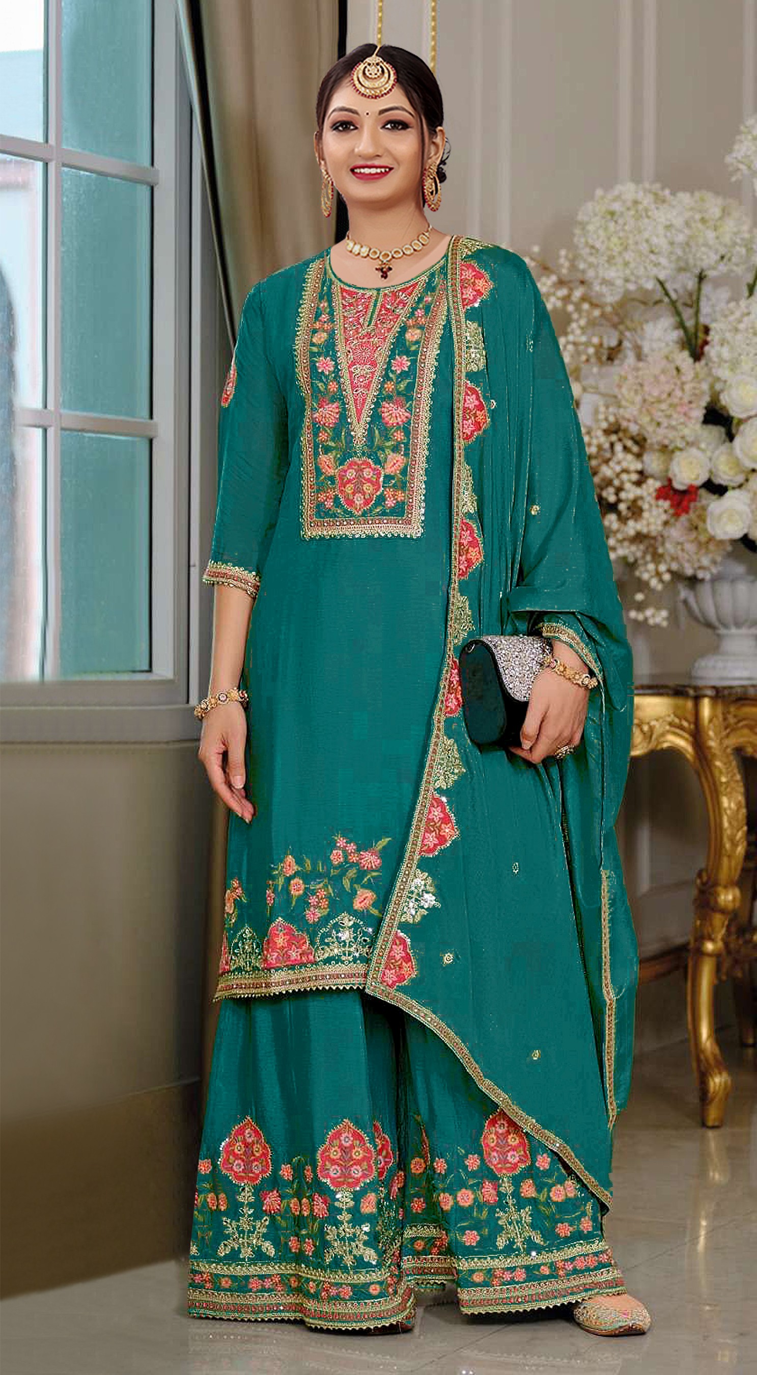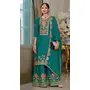 Teal Blue Chinon Semi Stitched Suit with Embroidery Sequence Work