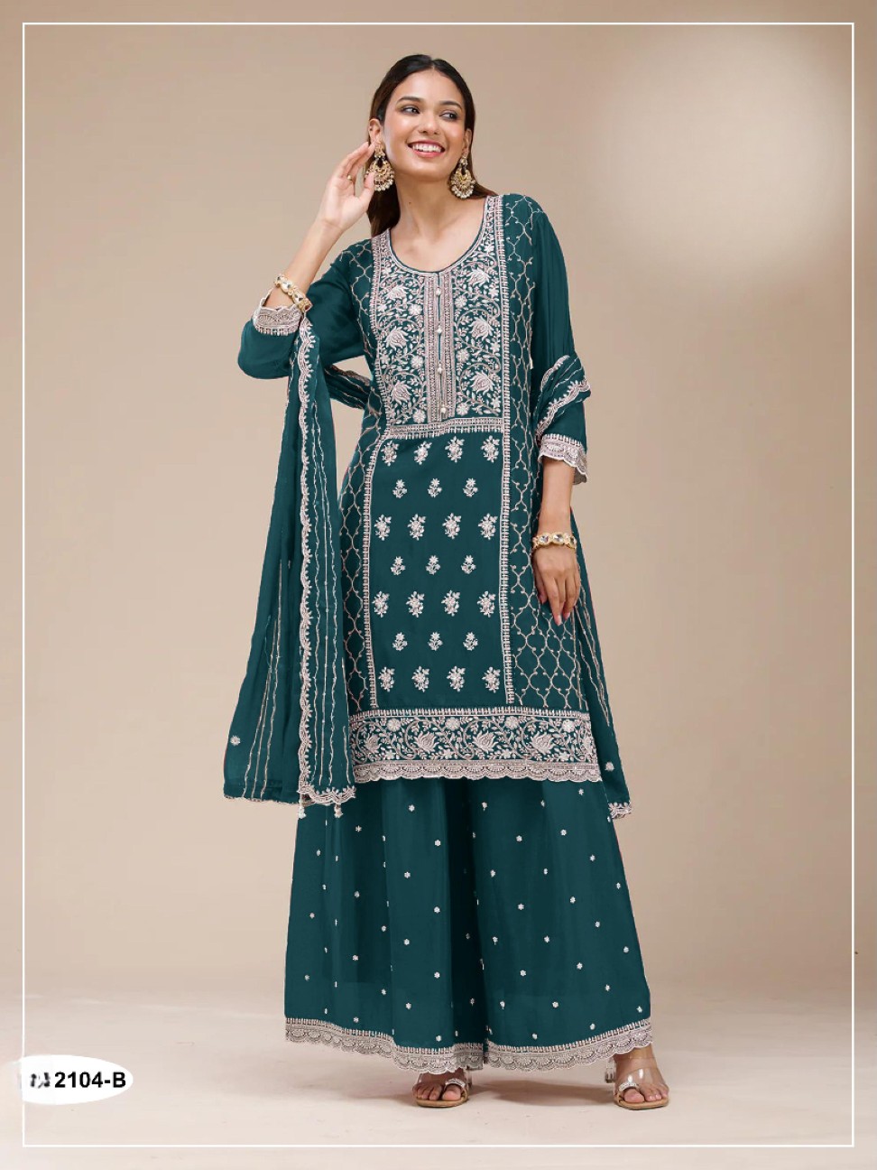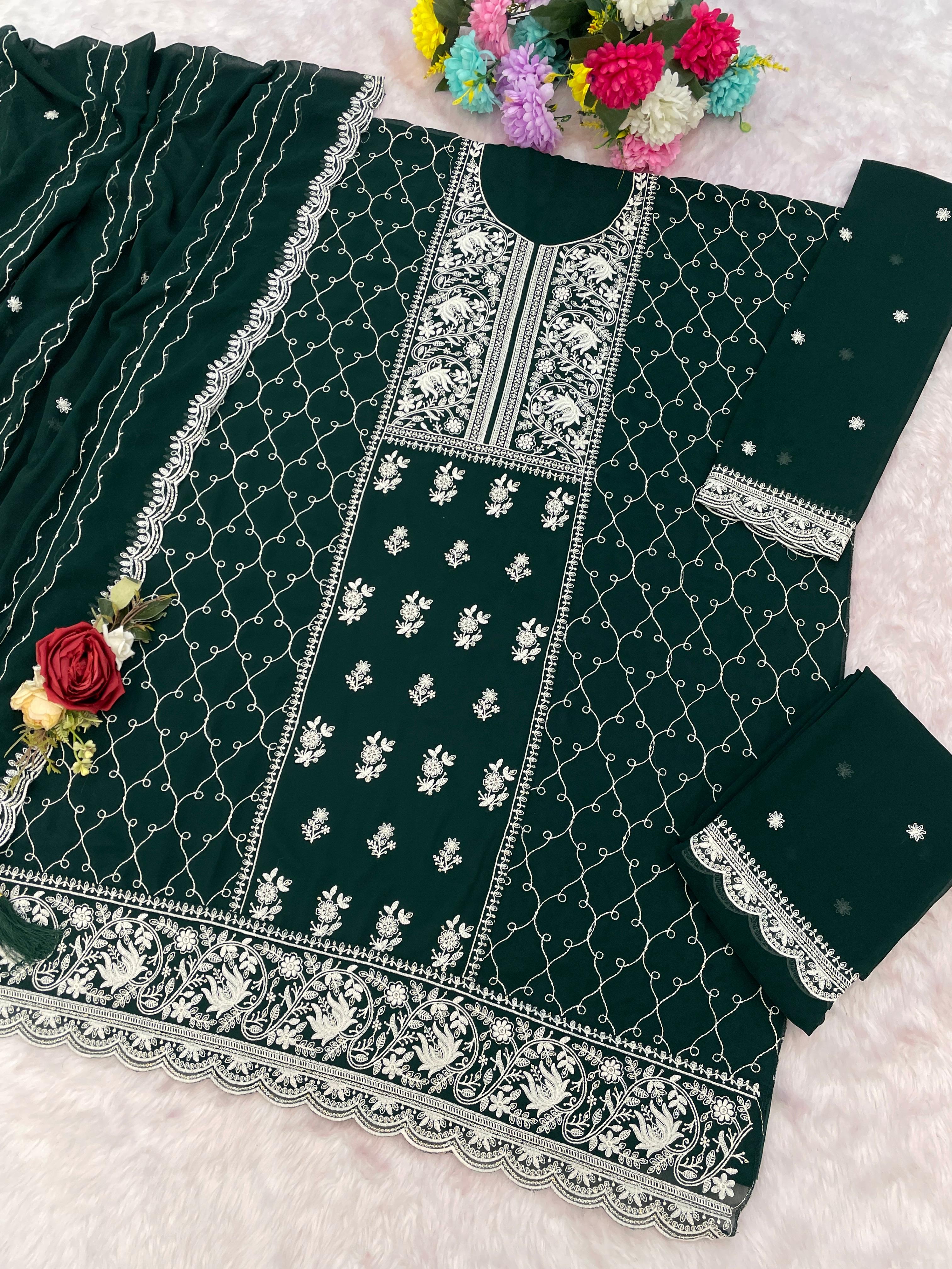 Teal Blue Faux Georgette Semi Stitched Suit with Embroidery Sequence Work