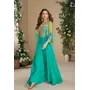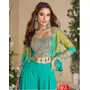 Teal Blue heavy chinon silk readymade 3 piece set with sequence & mirror work