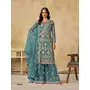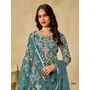 Teal Blue Heavy Net Semi Stitched Suit with Embroidery Work