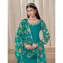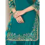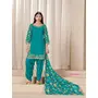 Teal-blue Premium Embroidered Roman Silk Semi Stitched Salwar Suit