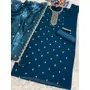 Teal Blue Silk Embroidered Viscose Thread Jari work Semi Stitched Salwar Suit