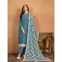 Teal Embroidered Faux Georgette Semi Stitched Salwar Suit
