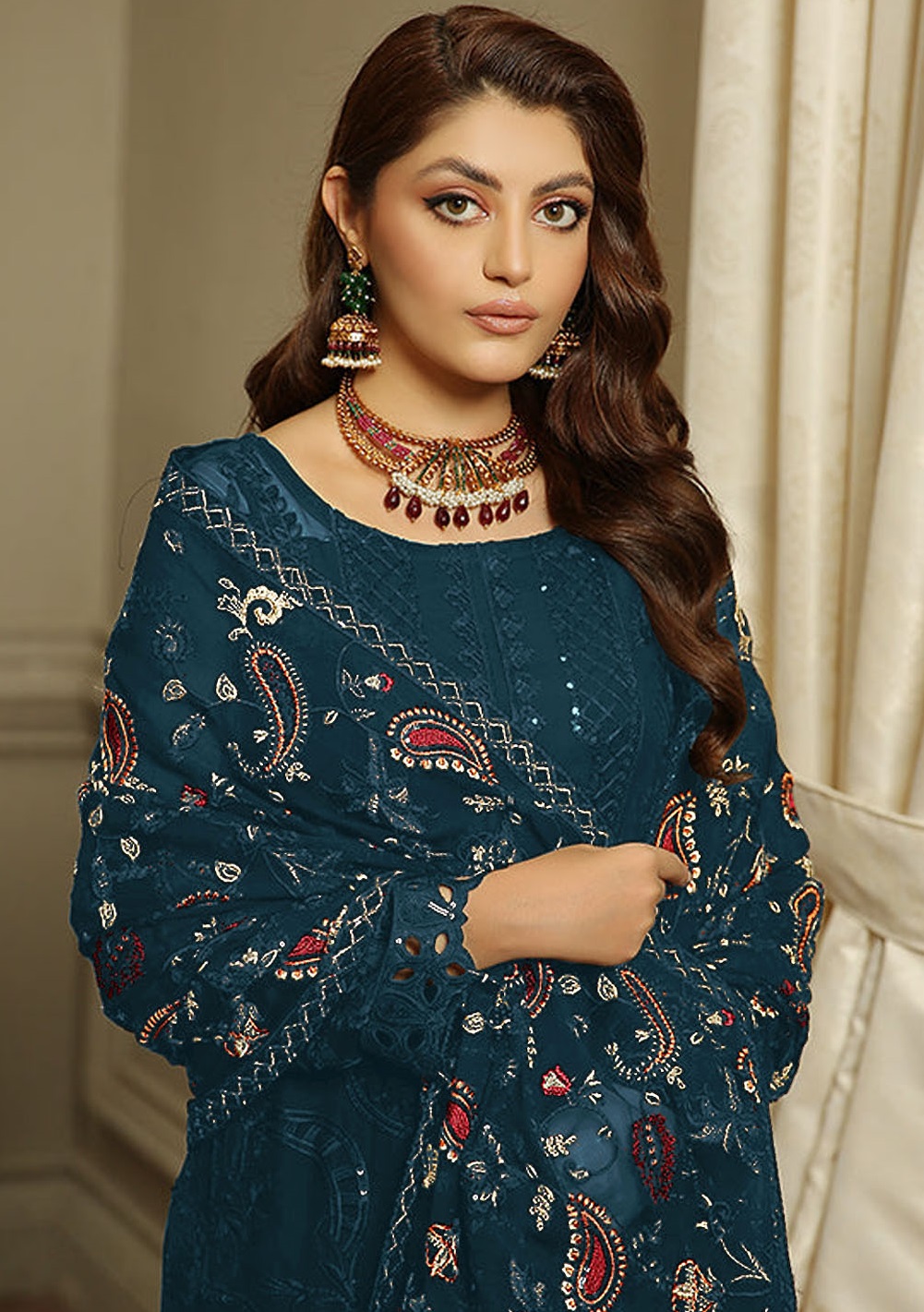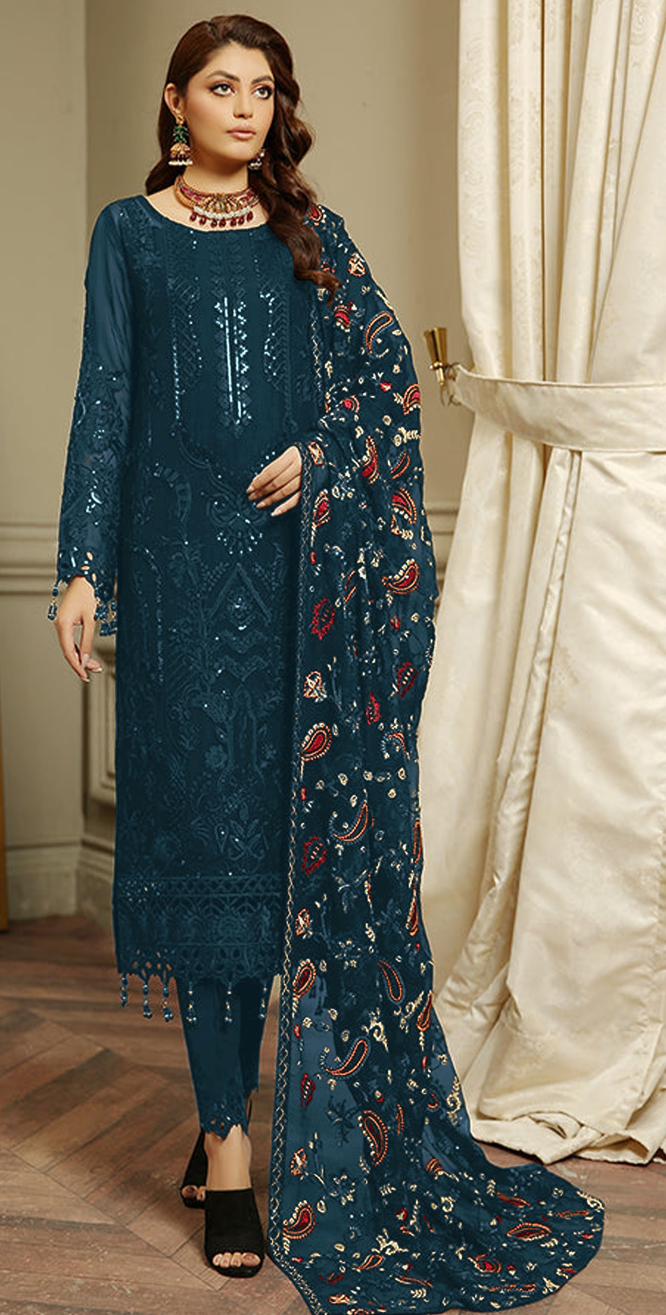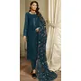 Teal Embroidered Faux Georgette Semi Stitched Salwar Suit