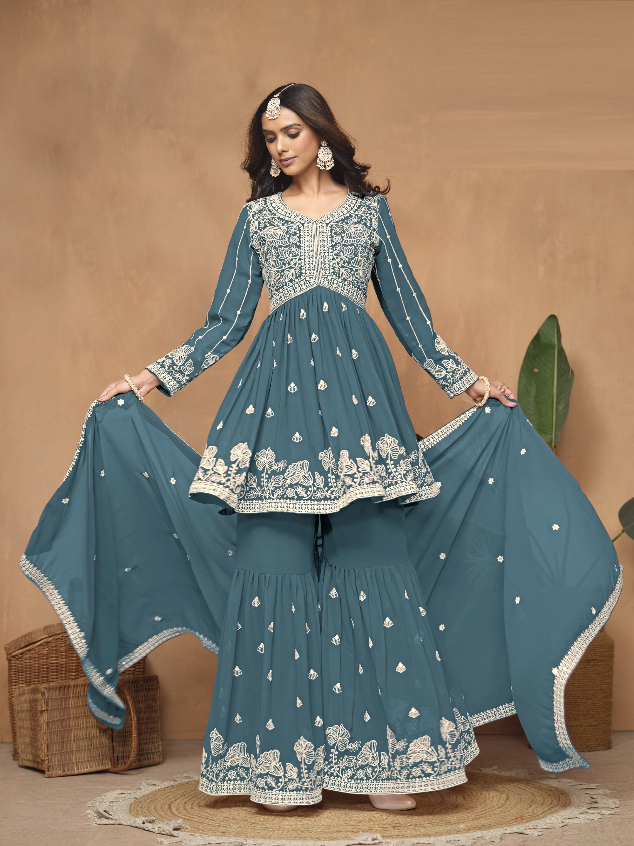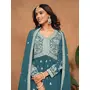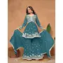 Teal Embroidered Faux Georgette Semi Stitched Sharara Suit