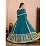 Teal Embroidered Net Semi Stitched Anarkali Suit
