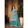 Teal Embroidered Net Semi Stitched Plazzo Suit