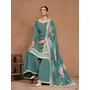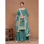 Teal Embroidered Roman Silk Semi Stitched Sharara Suit