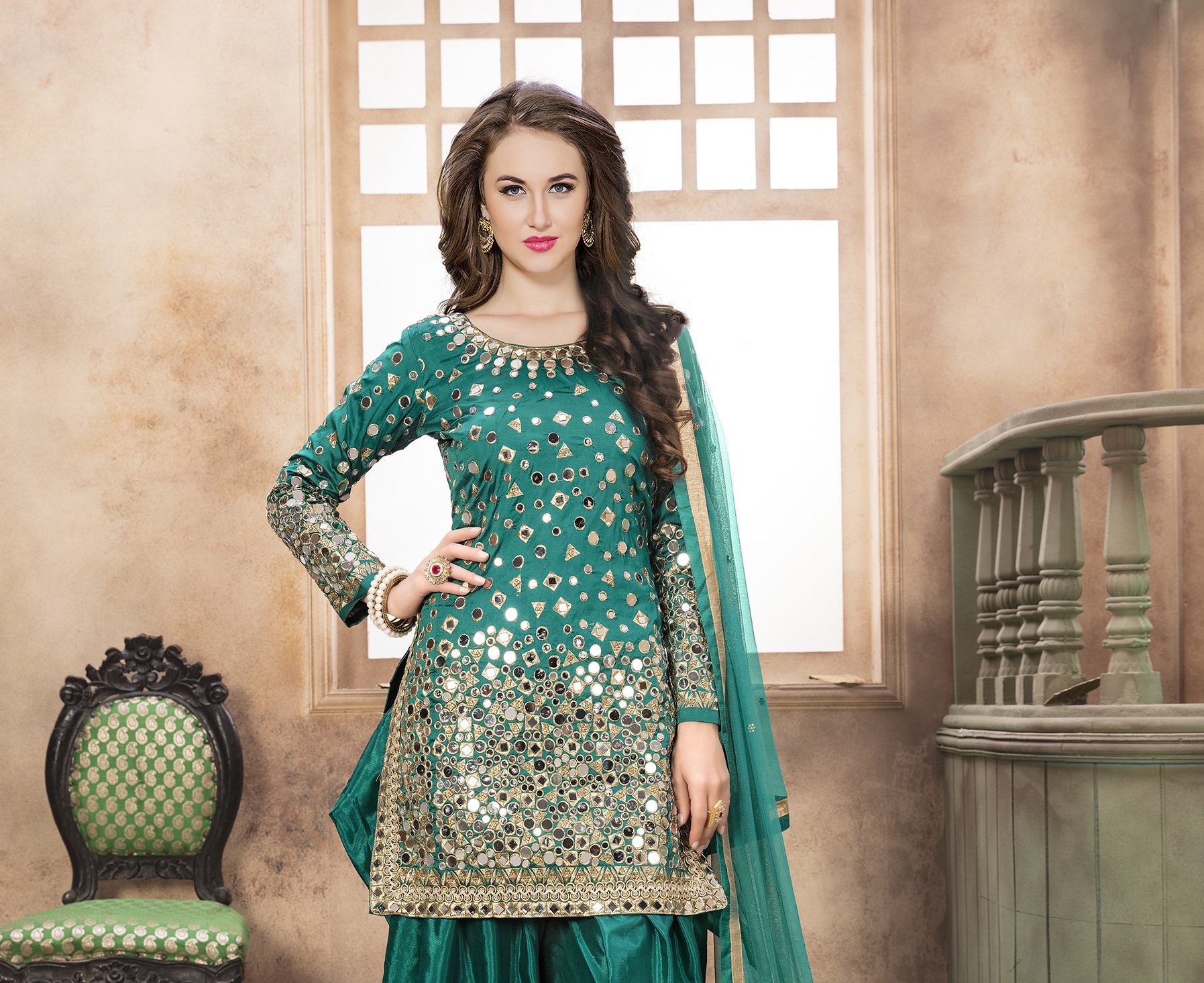 Teal Embroidered Tapeta Silk Semi Stitched Salwar Suit