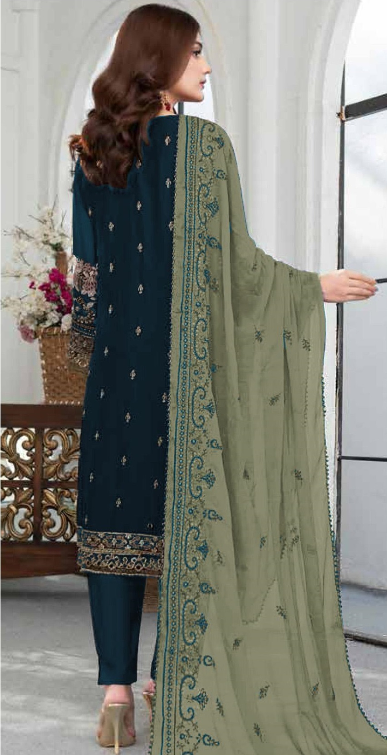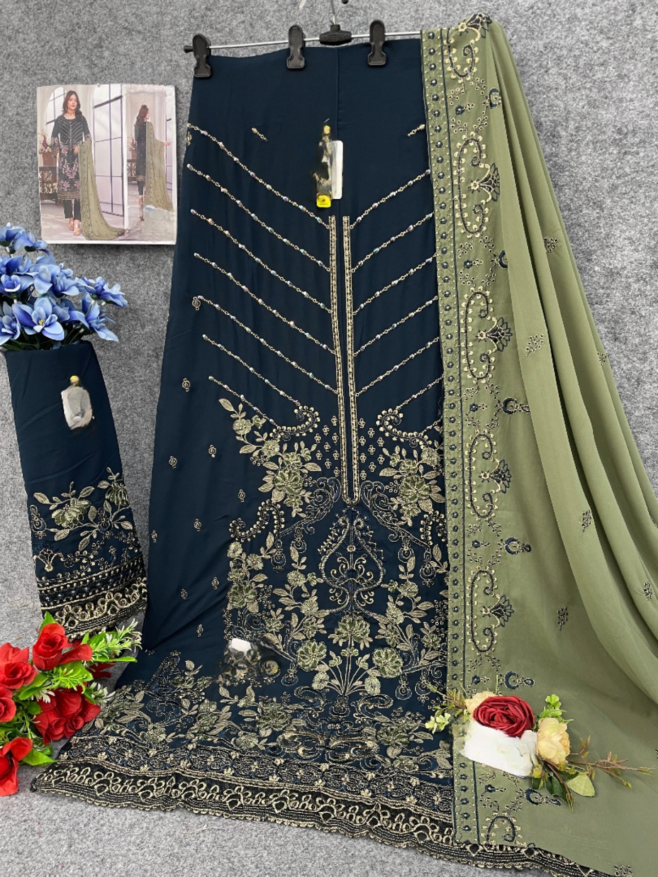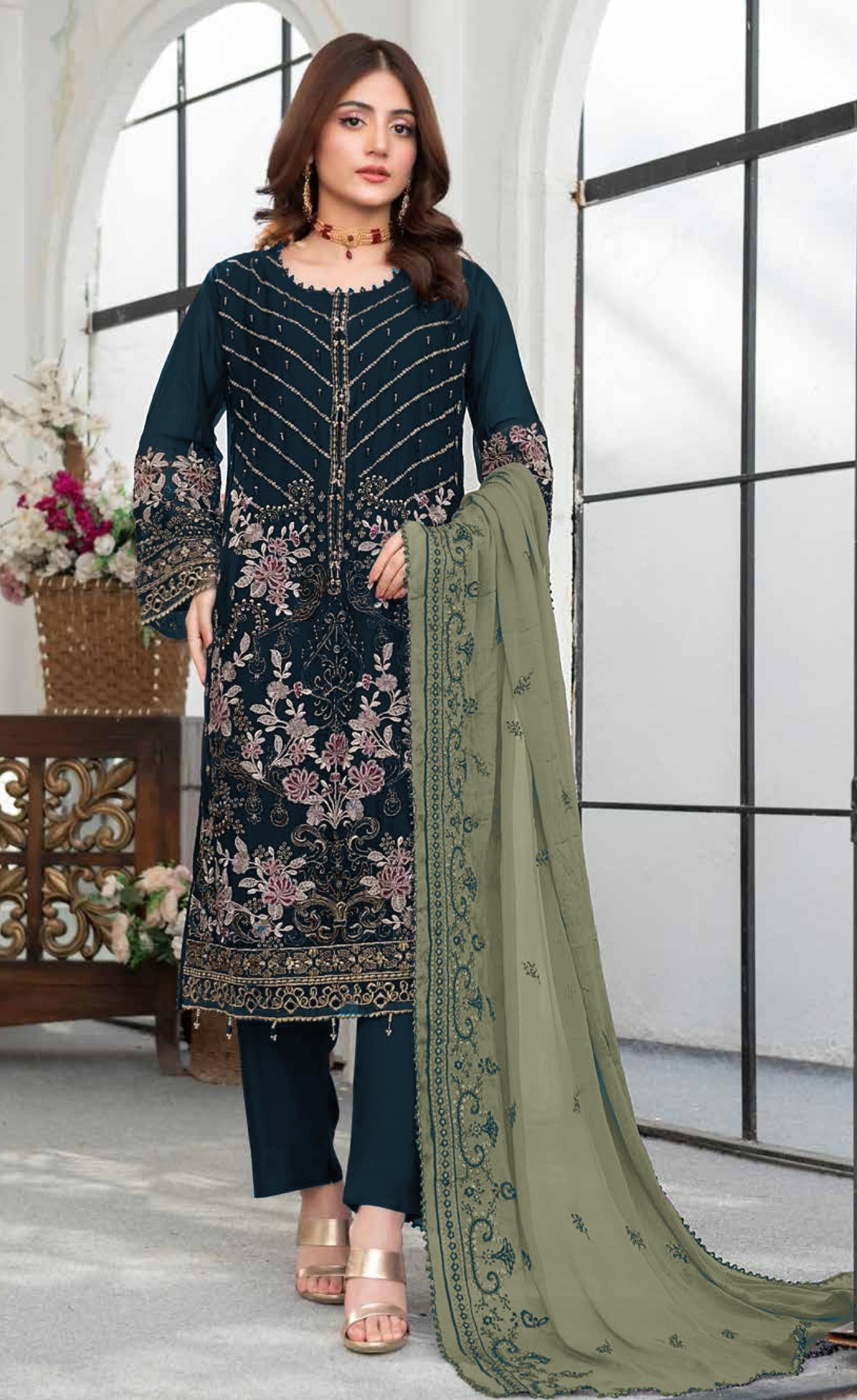 Teal Faux Georgette Semi Stitched Suit with Embroidery Work