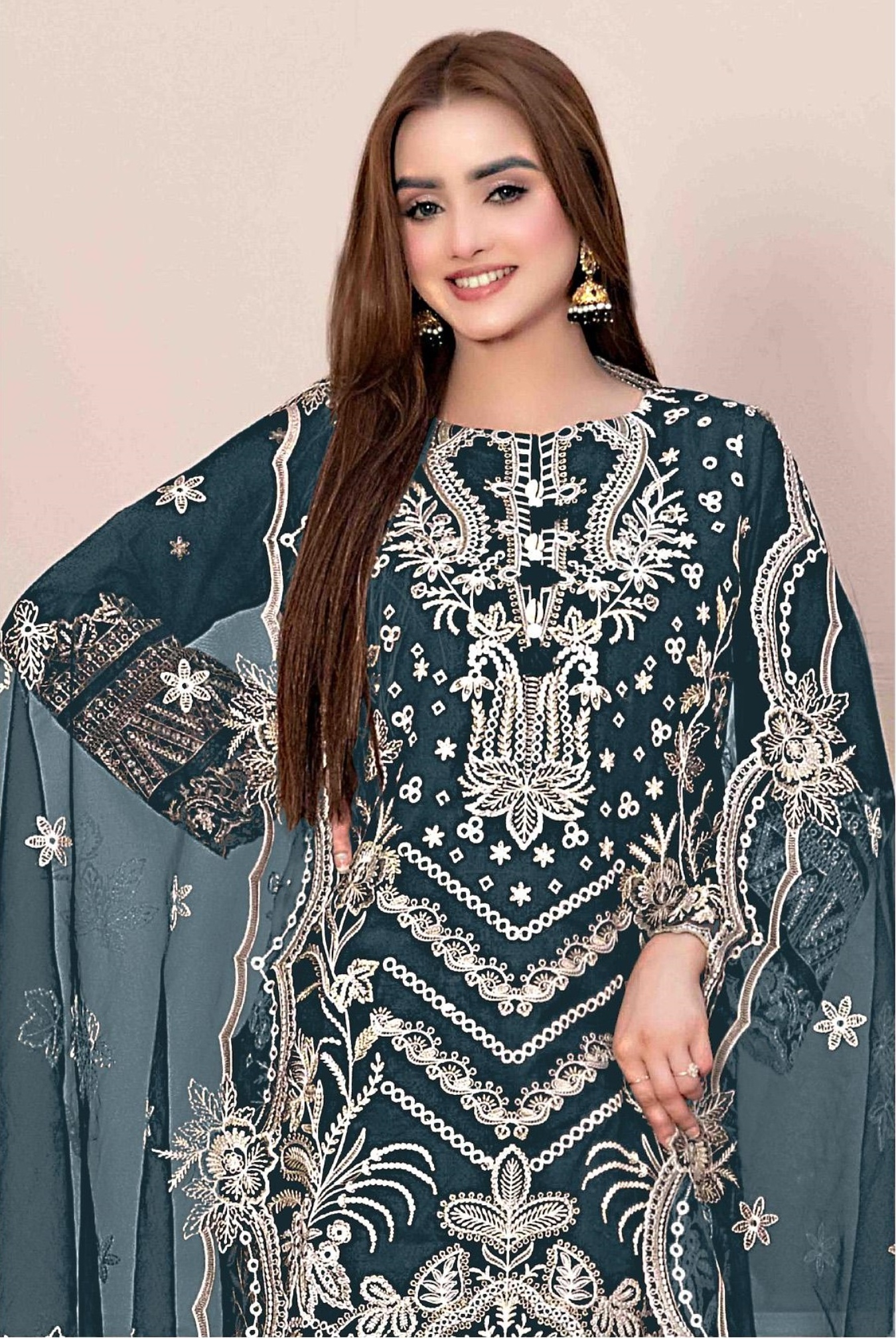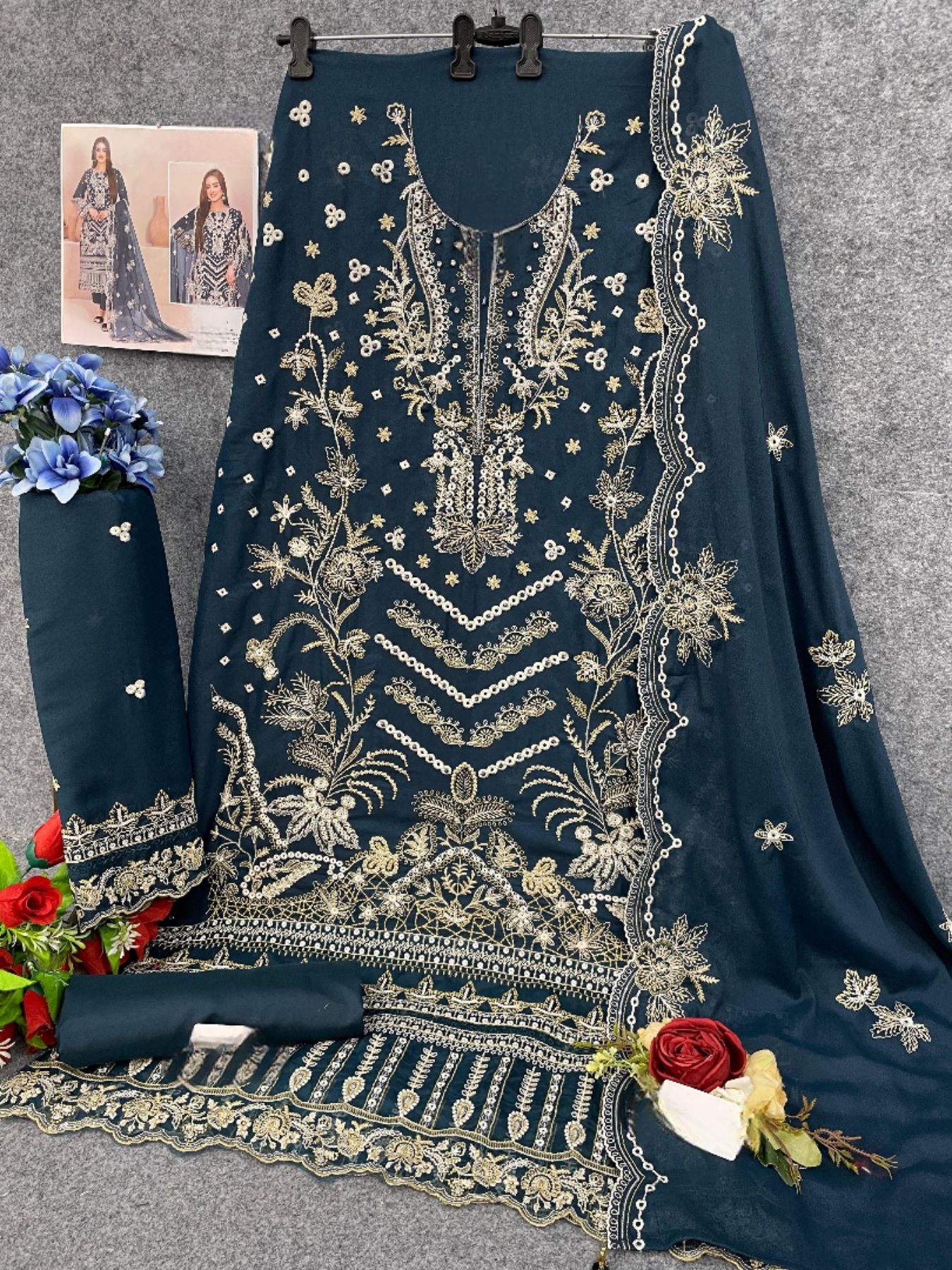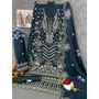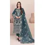 Teal Faux Georgette Semi Stitched Suit with Embroidery Work