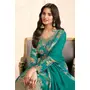 Teal Green Chinon Semi Stitched Suit with Multi Digital Printed Work