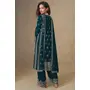 Teal Green Chinon Silk Semi Stitched Suit with Embroidery & Sequence Work
