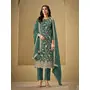 Teal Green Embroderied Silk Semi-Stitched Salwar Suit