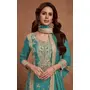Teal Green Embroidered Silk Semi Stitched Salwar Suit