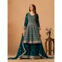 Teal Green faux georgette semi stitched plazzo suit with heavy embroidery work