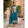 Teal Premium Embroidered Chinon Semi Stitched Salwar Suit