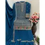 Teal Premium Embroidered Chinon Semi Stitched Salwar Suit
