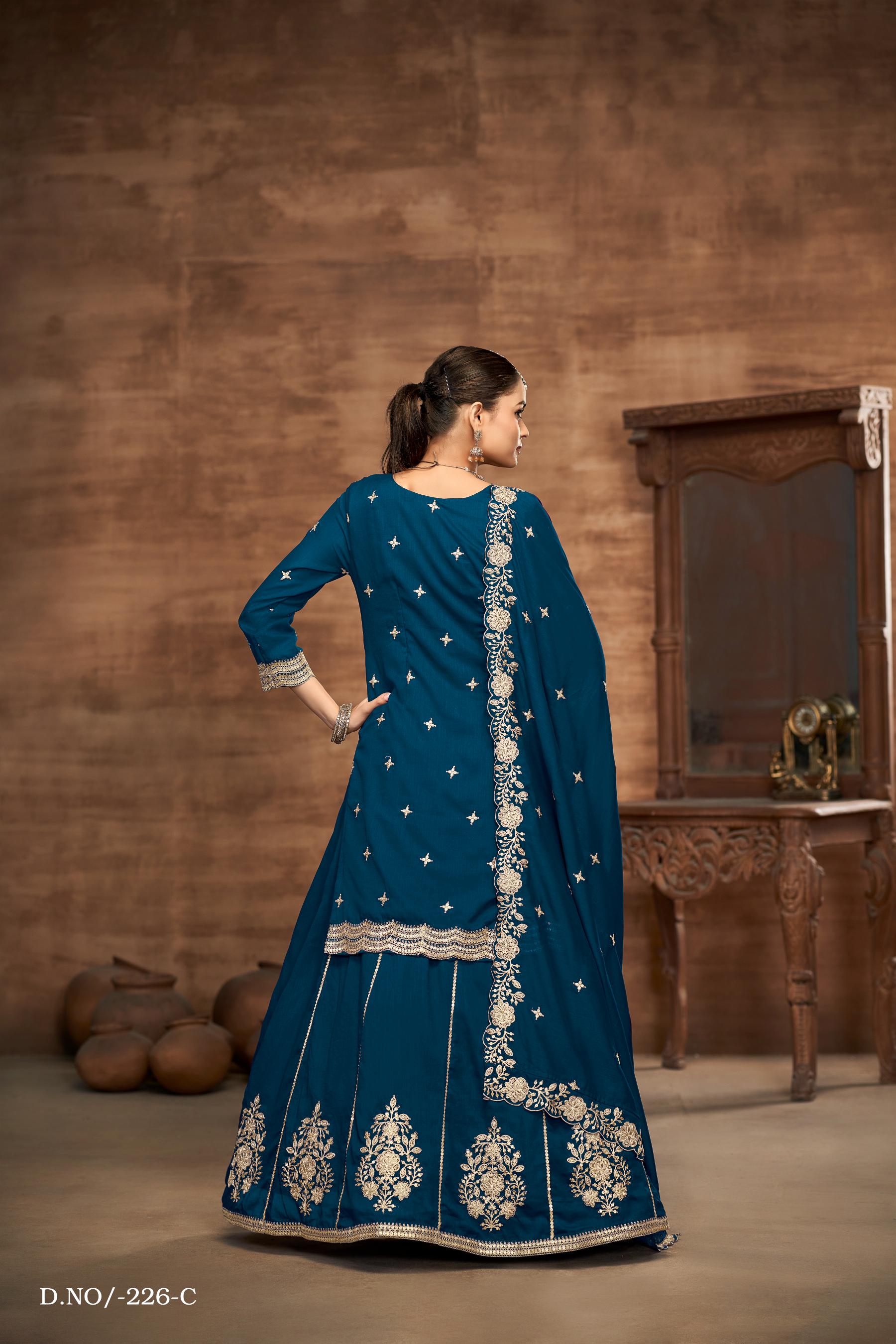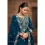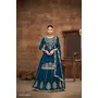 Teal Premium Embroidered Vichitra Silk Free Size Lehenga Style Suit