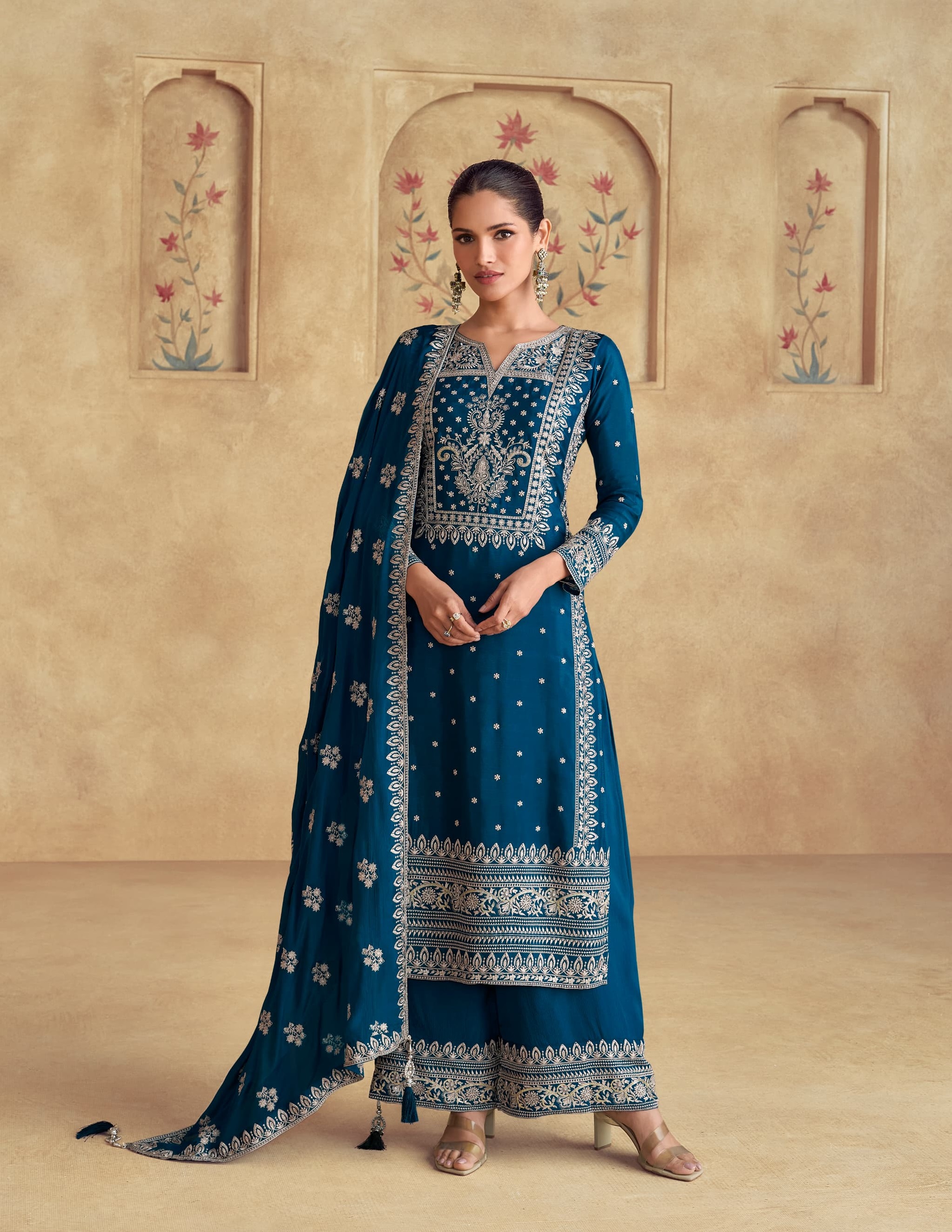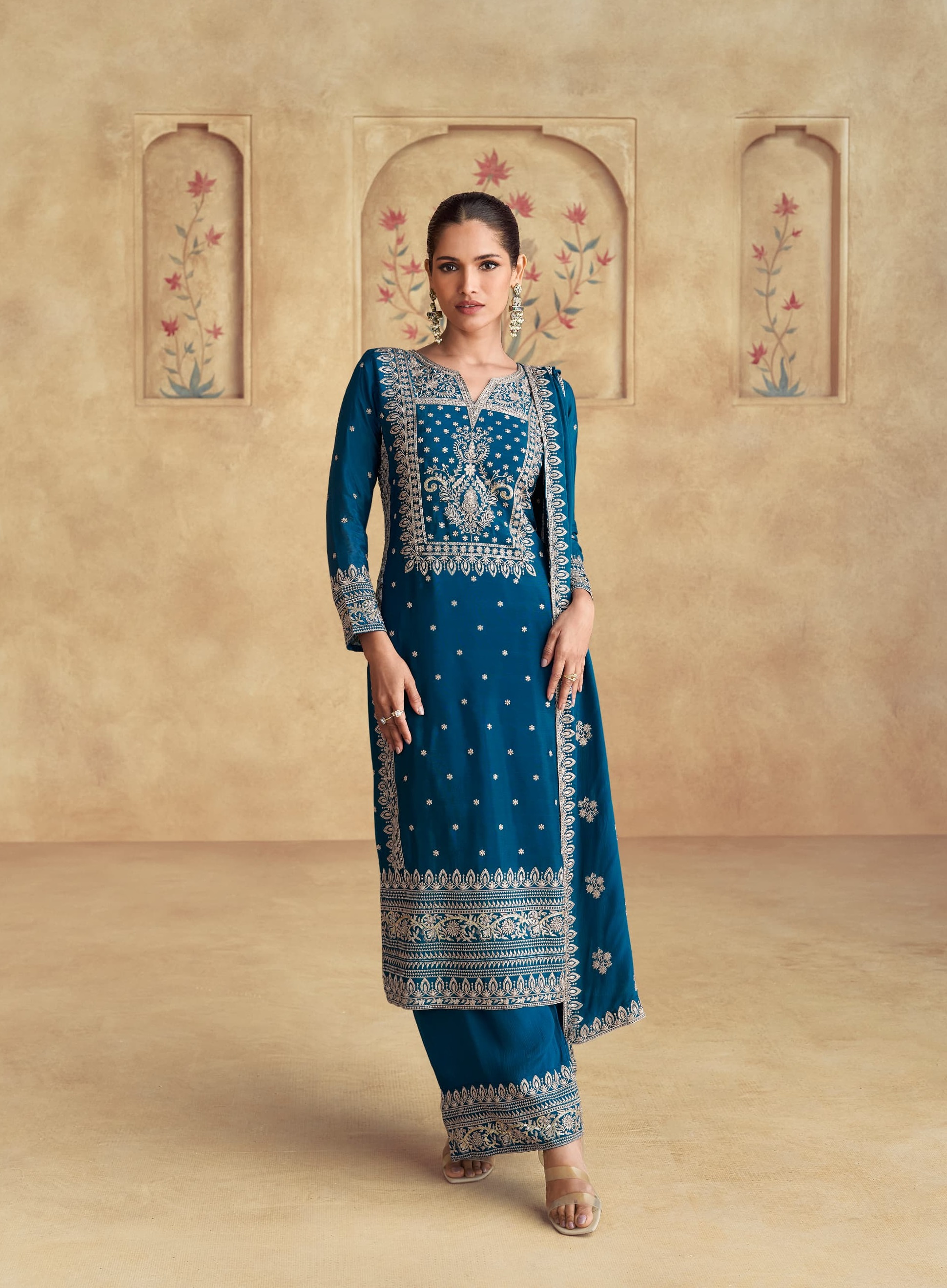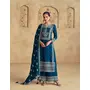 Teal Primium Chinon Embroidered Dhaga Sequence Work Ready Made Suit (Free Size)