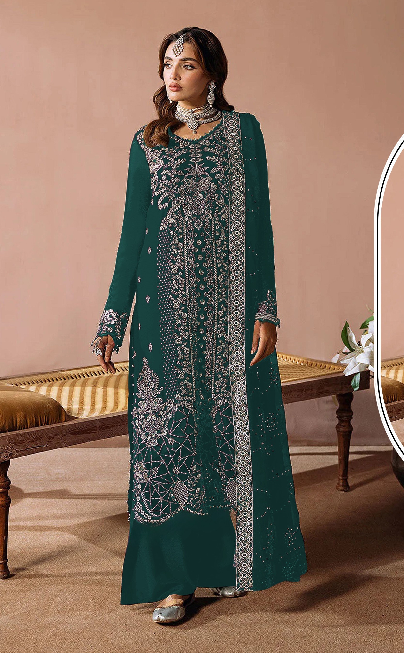 Teal Velvet Semi Stitched Suit with Embroidery Sequence Work