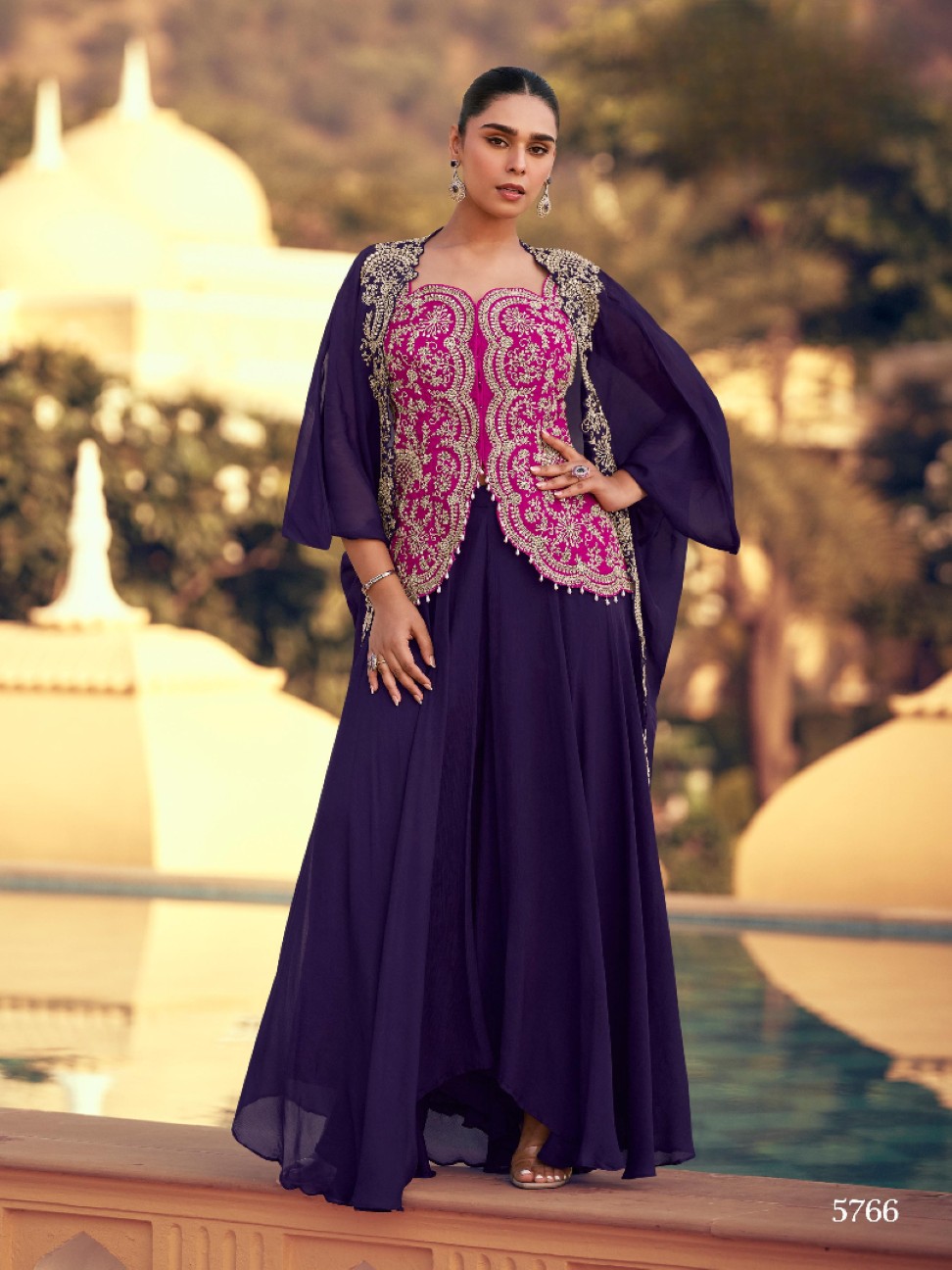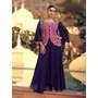 violet Chinon Readymade Shrug Suit with Heavy Embroidery Work