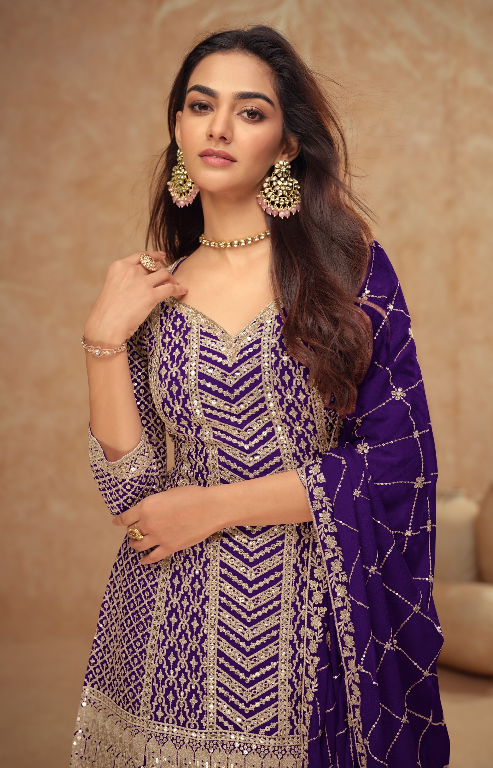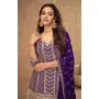 Violet Chinon Sequence Embroidered Readymade Salwar Suit (Free Size)