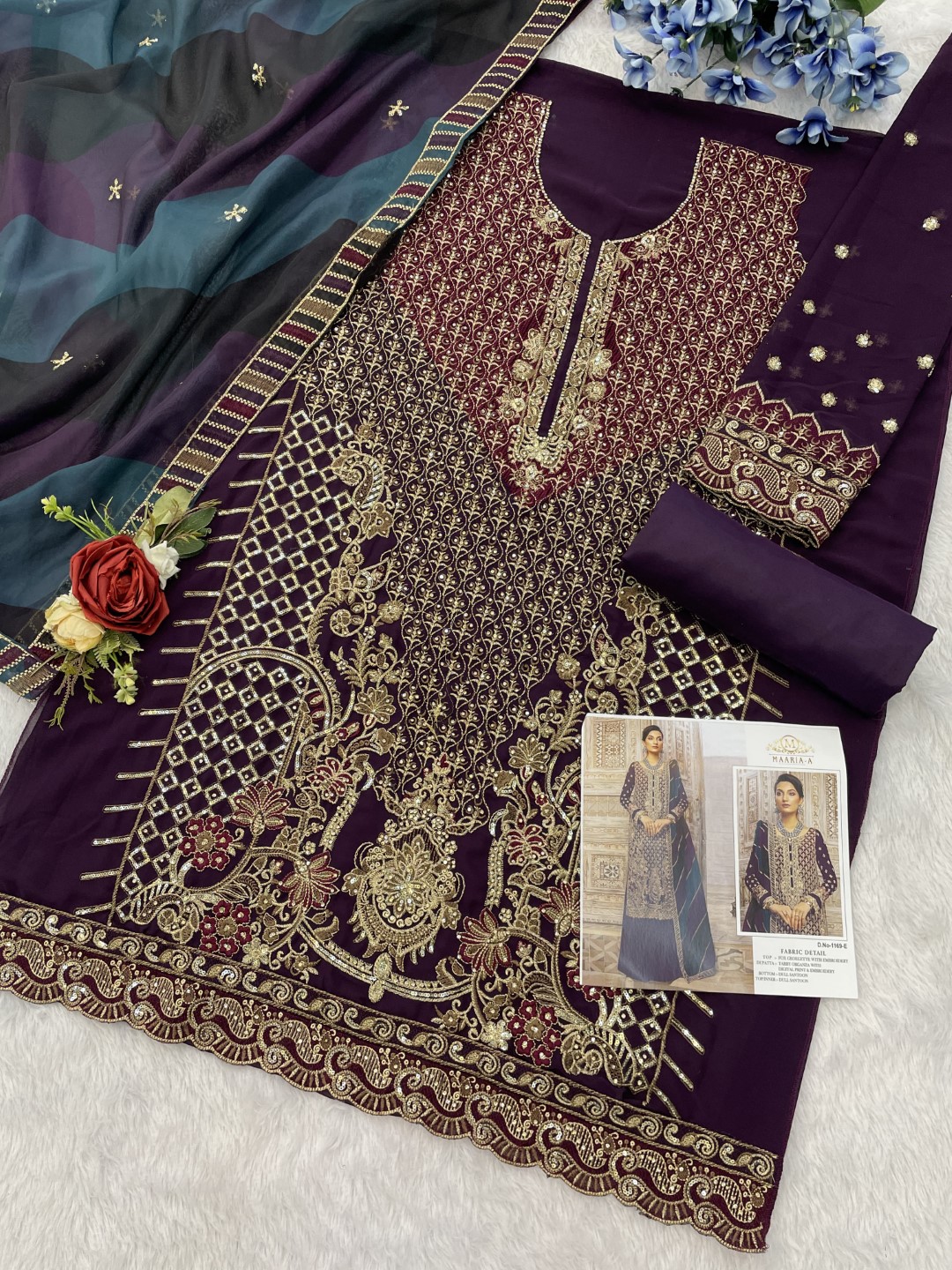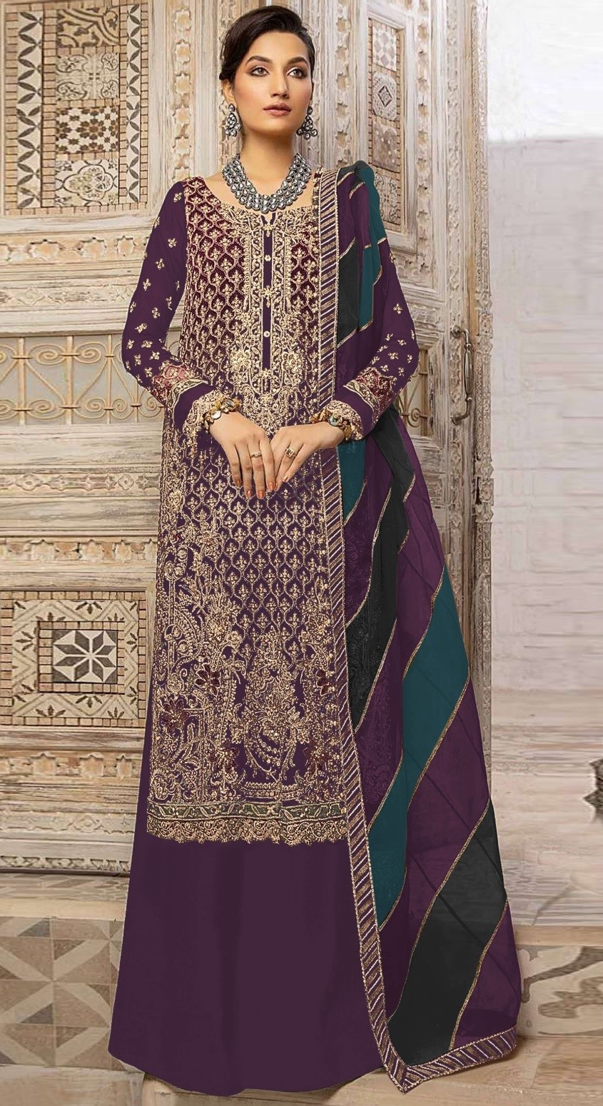 Violet Heavy Fox Georgette Embroidery Plazzo Suit