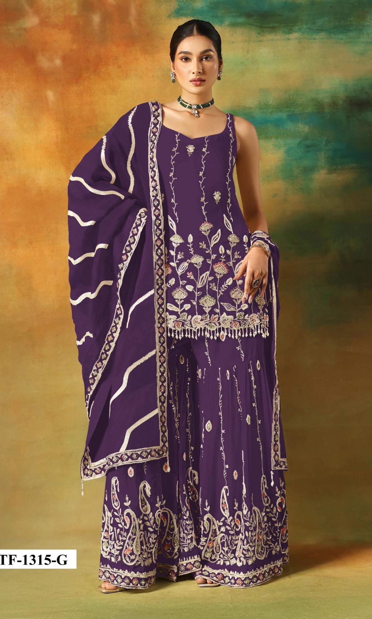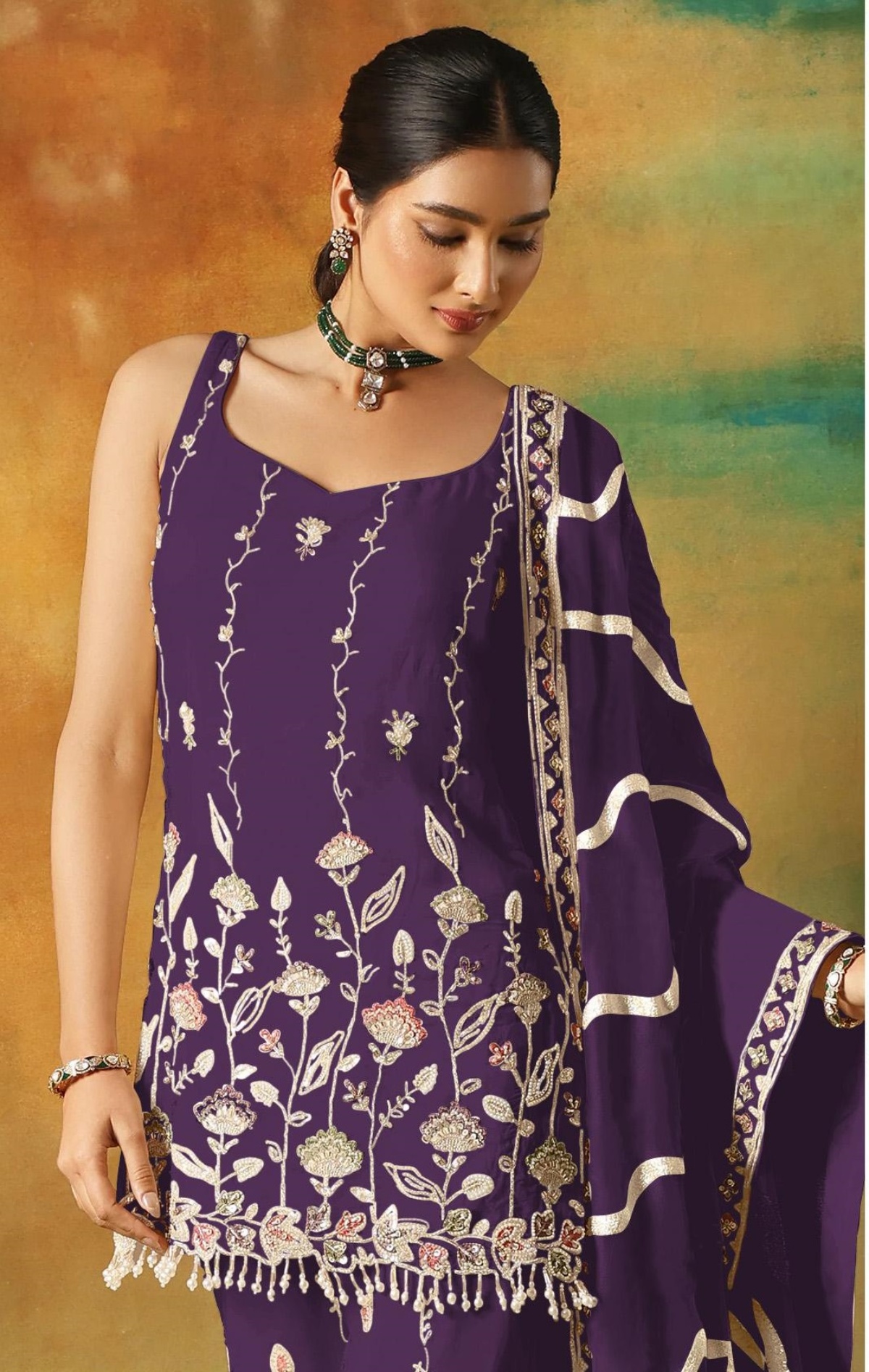 Violet Heavy Fox Georgette Semi Stitched Suit With Embroidery Work