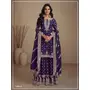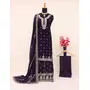 Violet heavy vichitra silk semi stitched suit with sequence & multi work
