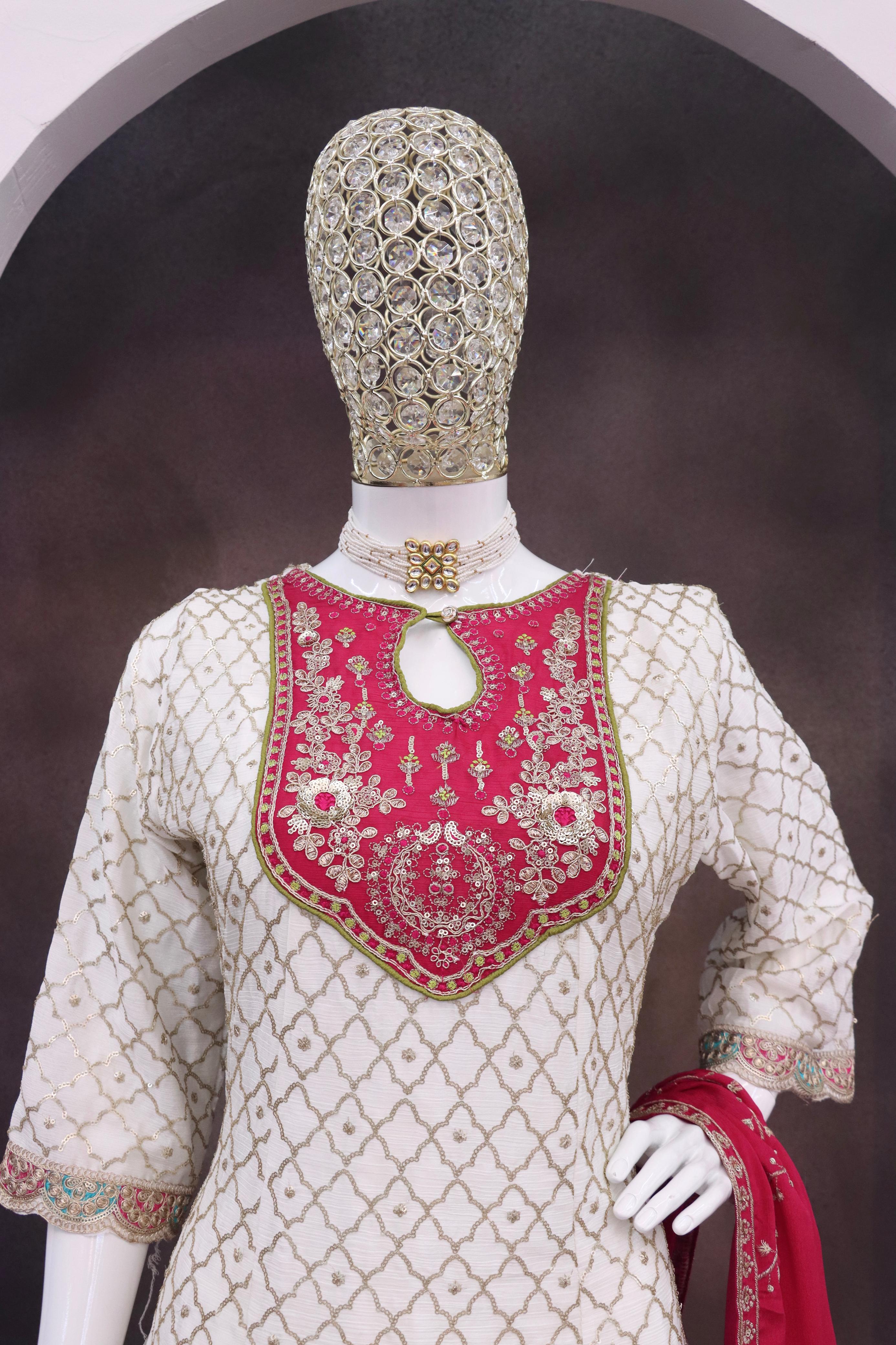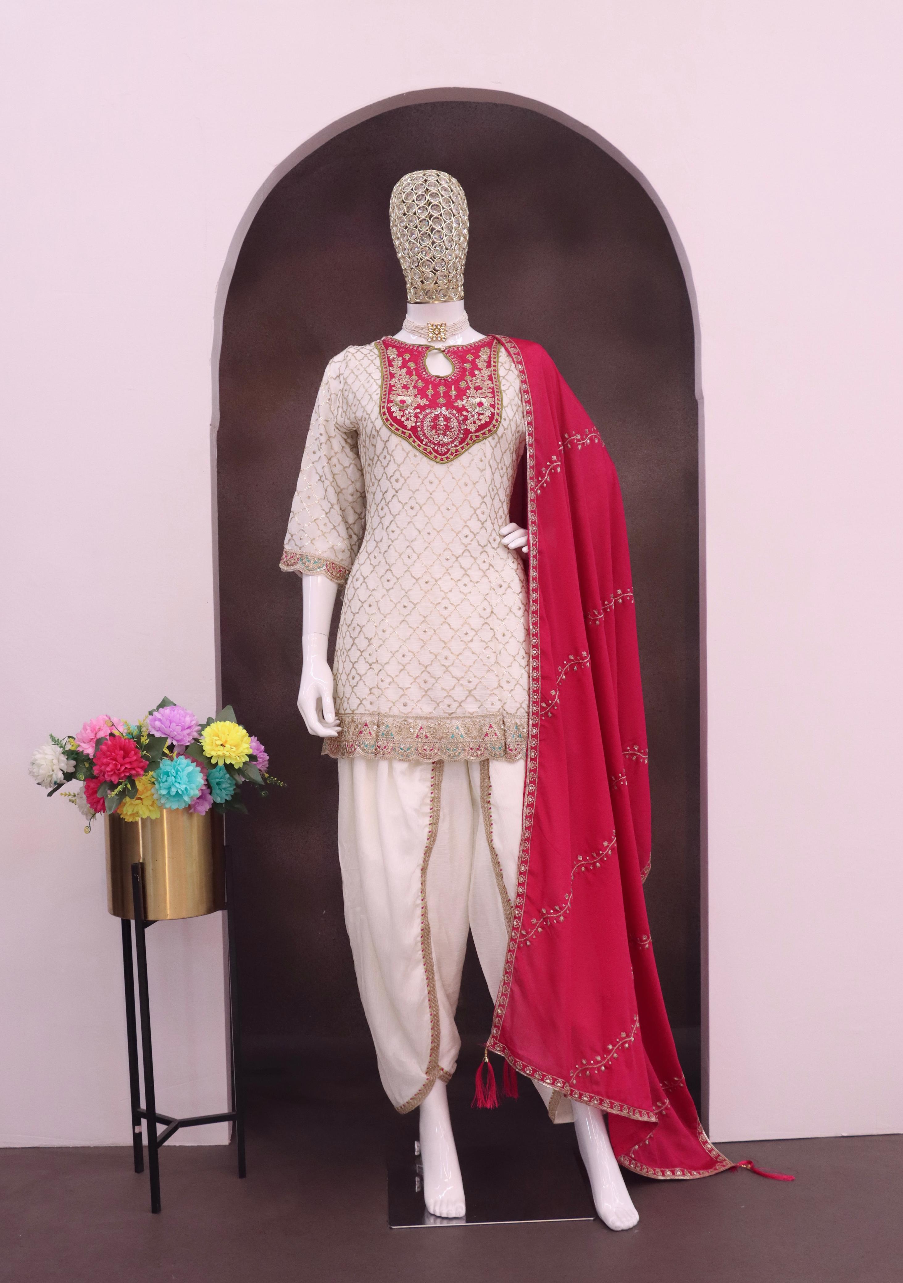 White Embroderied Silk Stitched Dhoti Suit