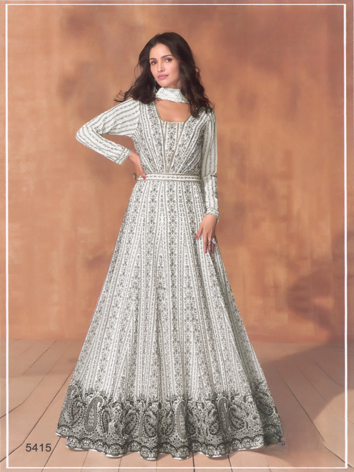 White Georgette Readymade Anarkali Suit with Sequence Work