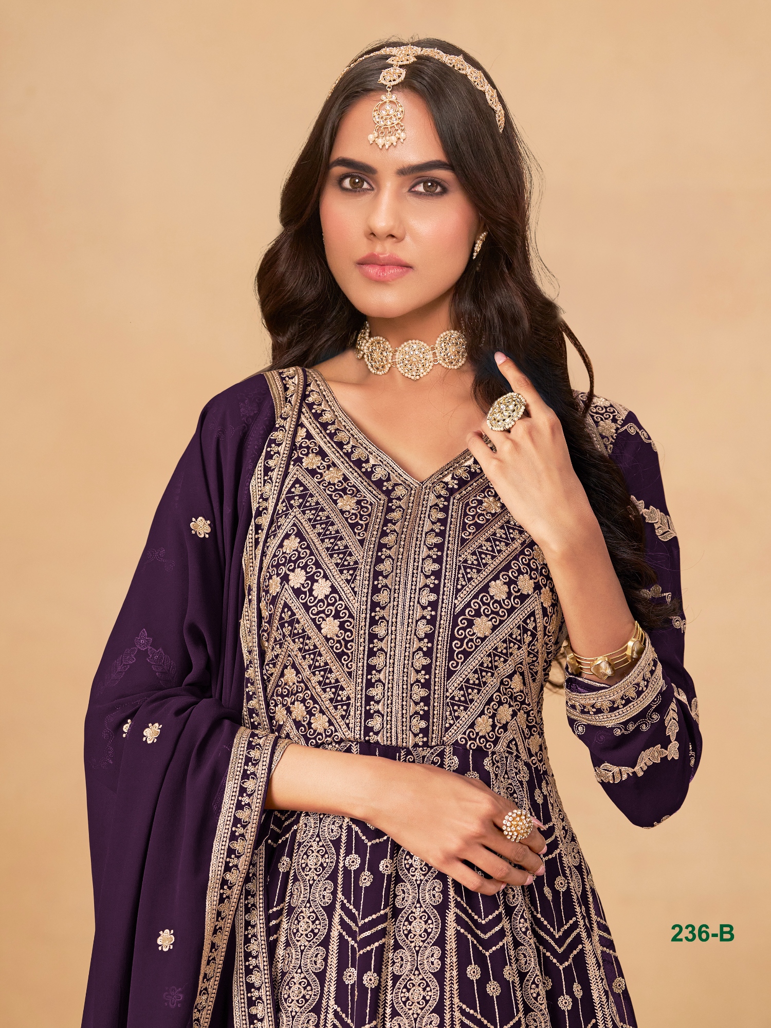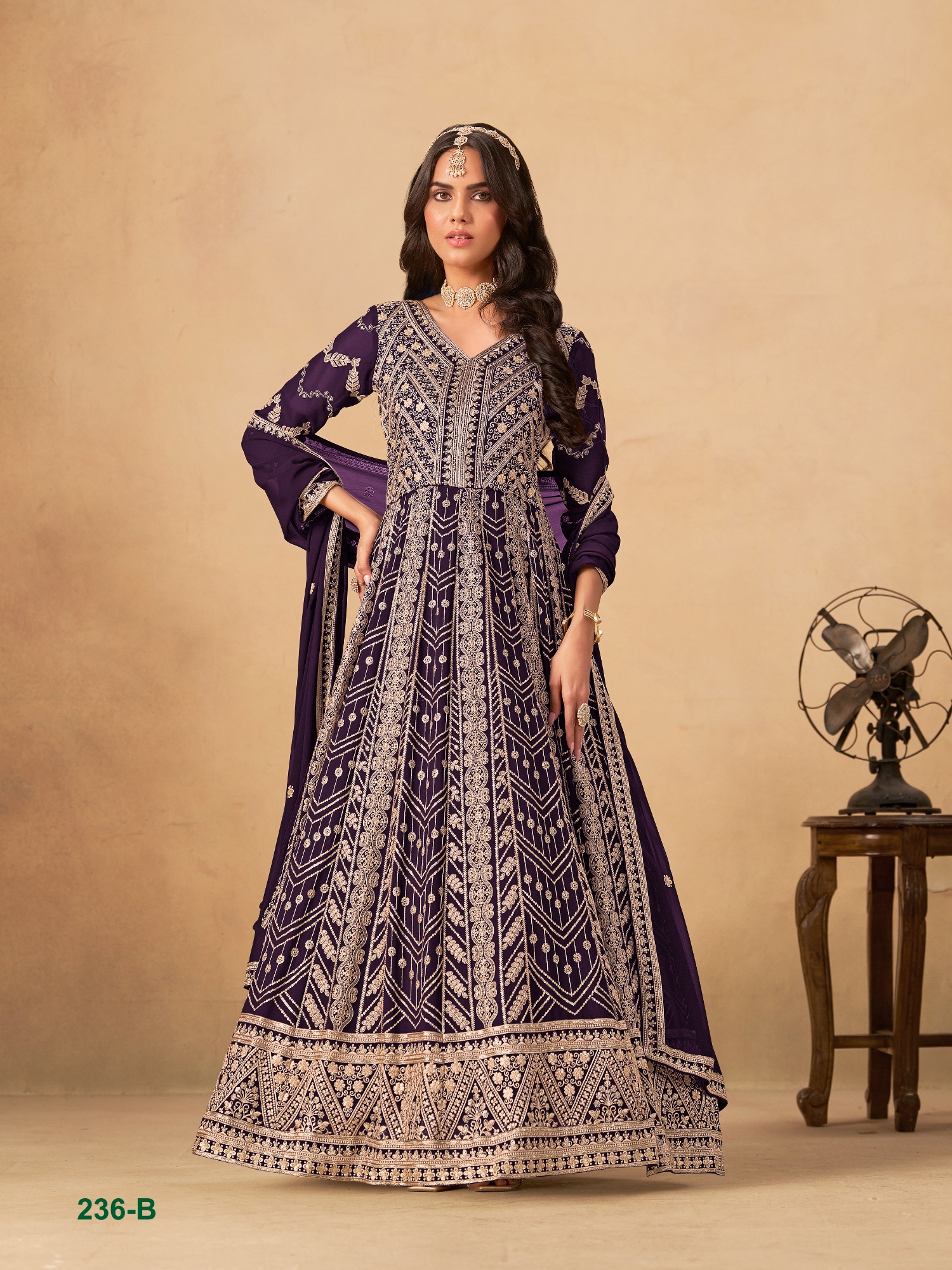Wine Faux Georgette Semi Stitched Anarkali Suit with Heavy Embroidery Work