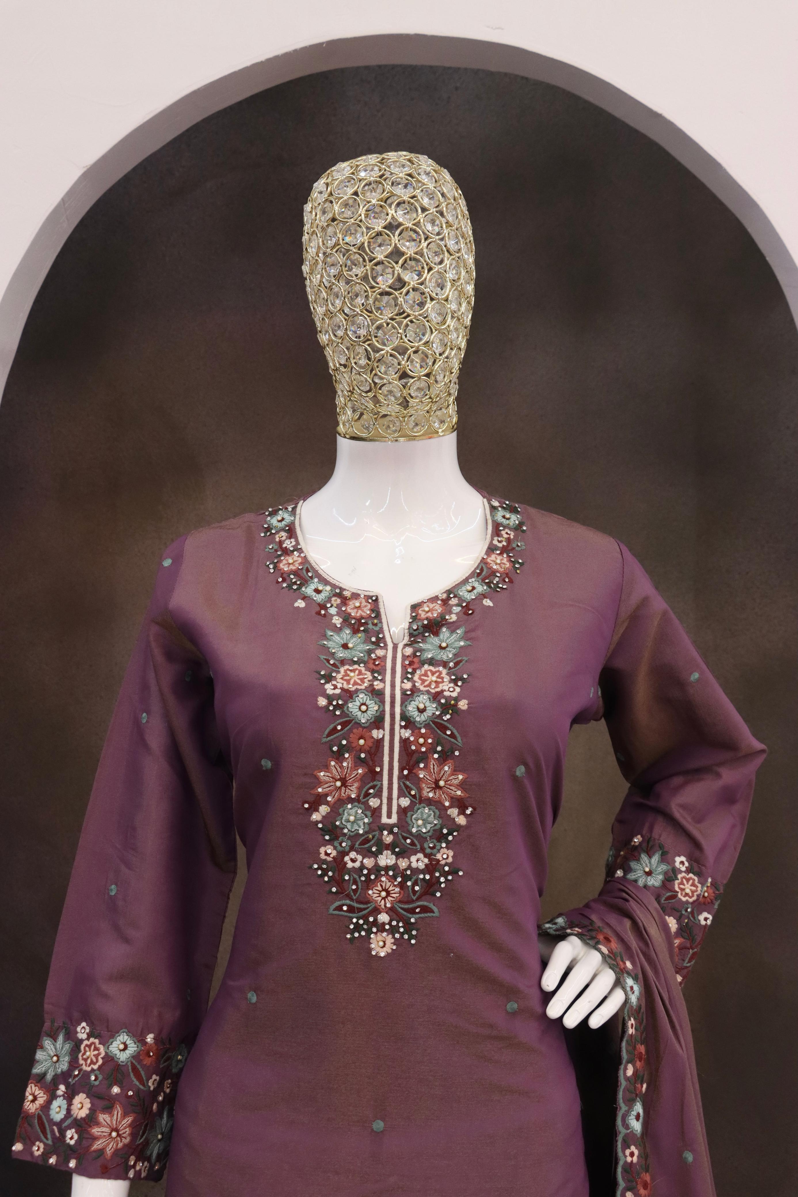 Wine Simar with Embroidery Multi & Zarkhan Work Readymade Plazzo suit