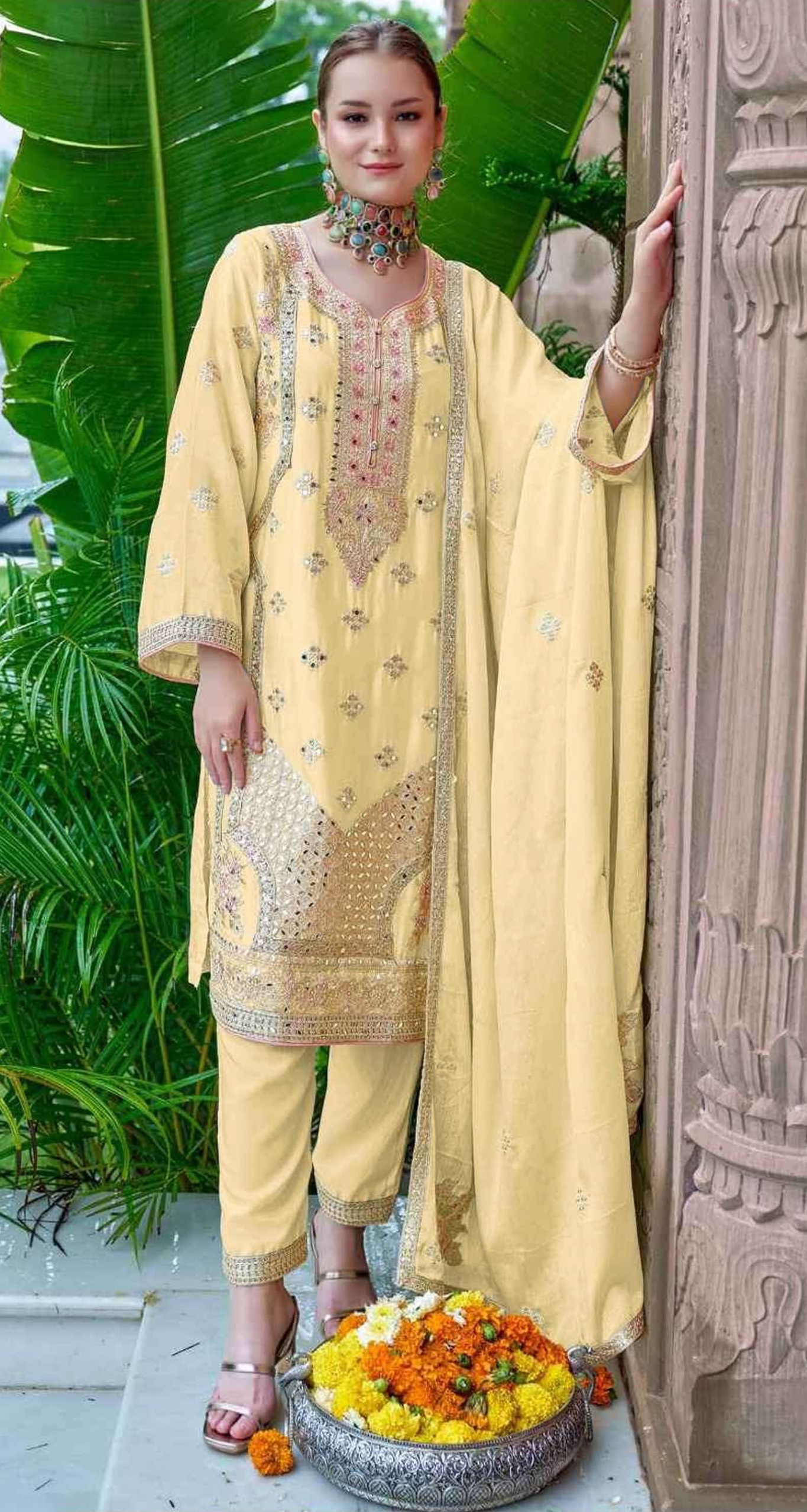 Anaita presents a beautifully crafted ethnic wear collection designed to add grace and elegance to your wardrobe. Made from carefully selected premium fabrics, each outfit offers a comfortable fit with a rich and stylish appearance. The designs are enhanced with fine embroidery, sequins, thread work, mirror work, or subtle hand embellishments that create a refined ethnic look without being heavy.Perfect for festivals, weddings, parties, family functions, and special occasions, these outfits are easy to style and suitable for both day and evening wear. Whether you prefer a modern designer touch or a traditional ethnic feel, Anaita outfits are created with attention to detail and quality finishing to ensure long-lasting wear and timeless appeal.