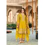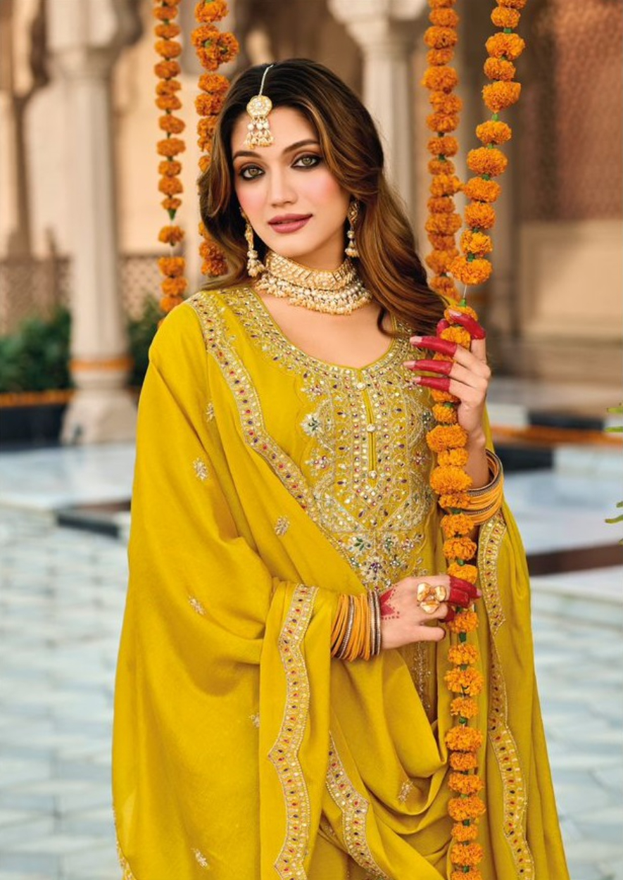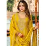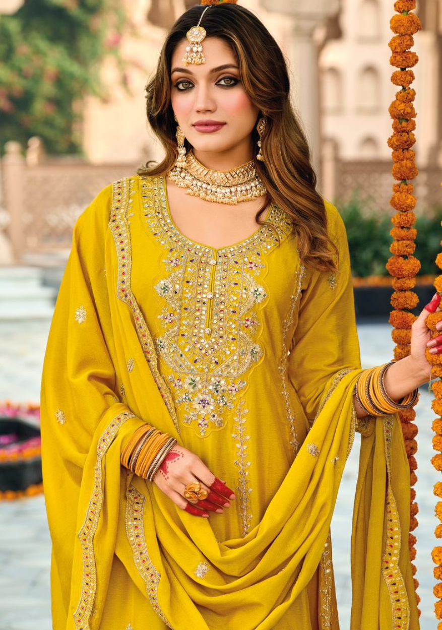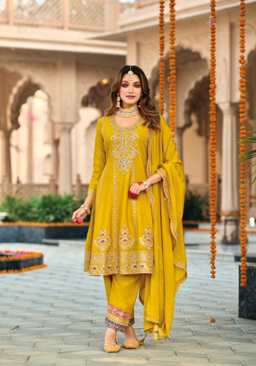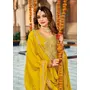 Yellow embroidered Chinon Squence Work free Size stitched anarkali suit