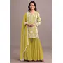 Yellow Embroidered Faux Georgette Semi Stitched Sharara Suit