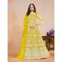 Yellow Embroidered Net Semi Stitched Anarkali Suit