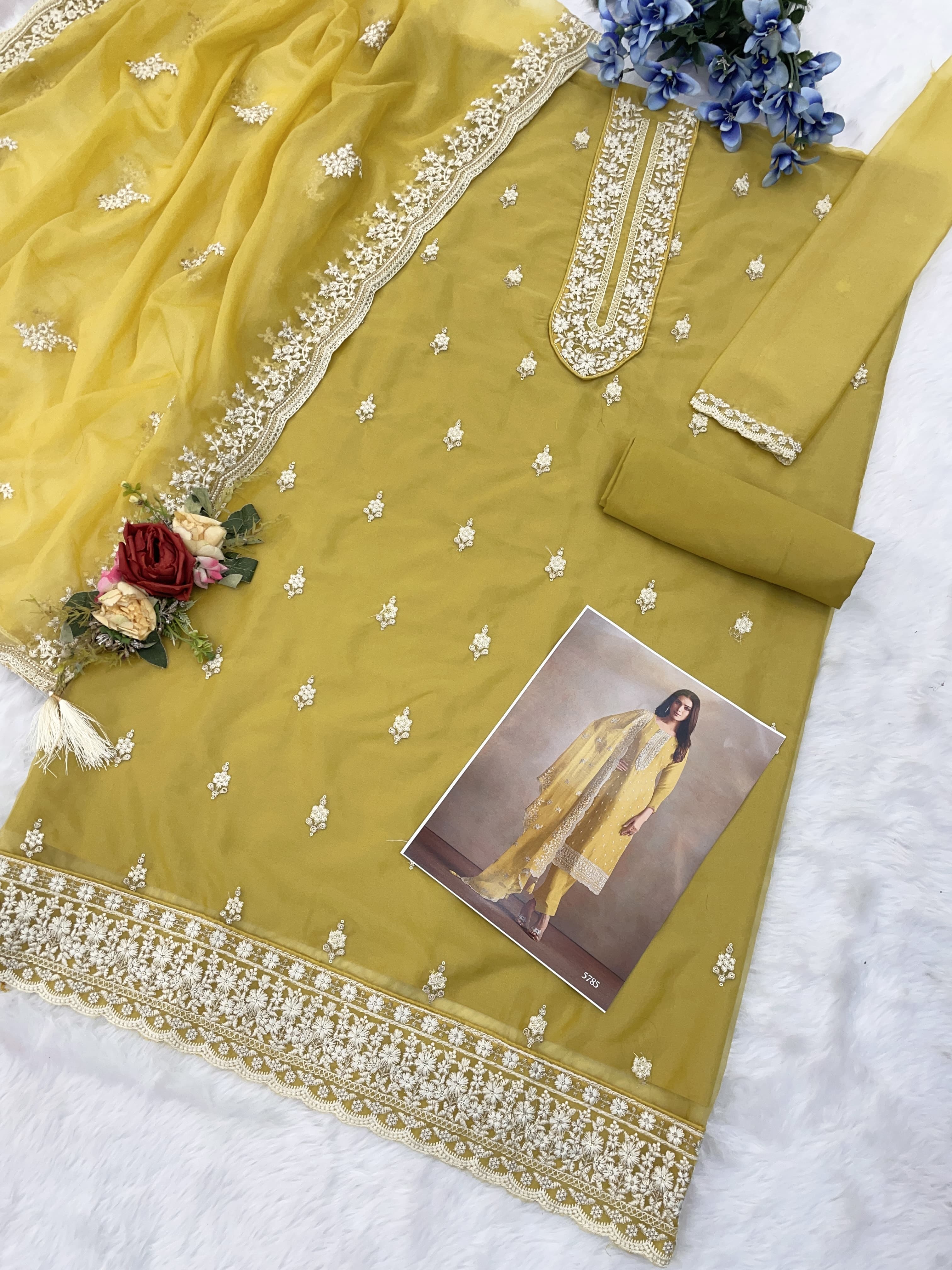 Yellow Heavy Orgenza With Embroidery Straight Salwar Suit