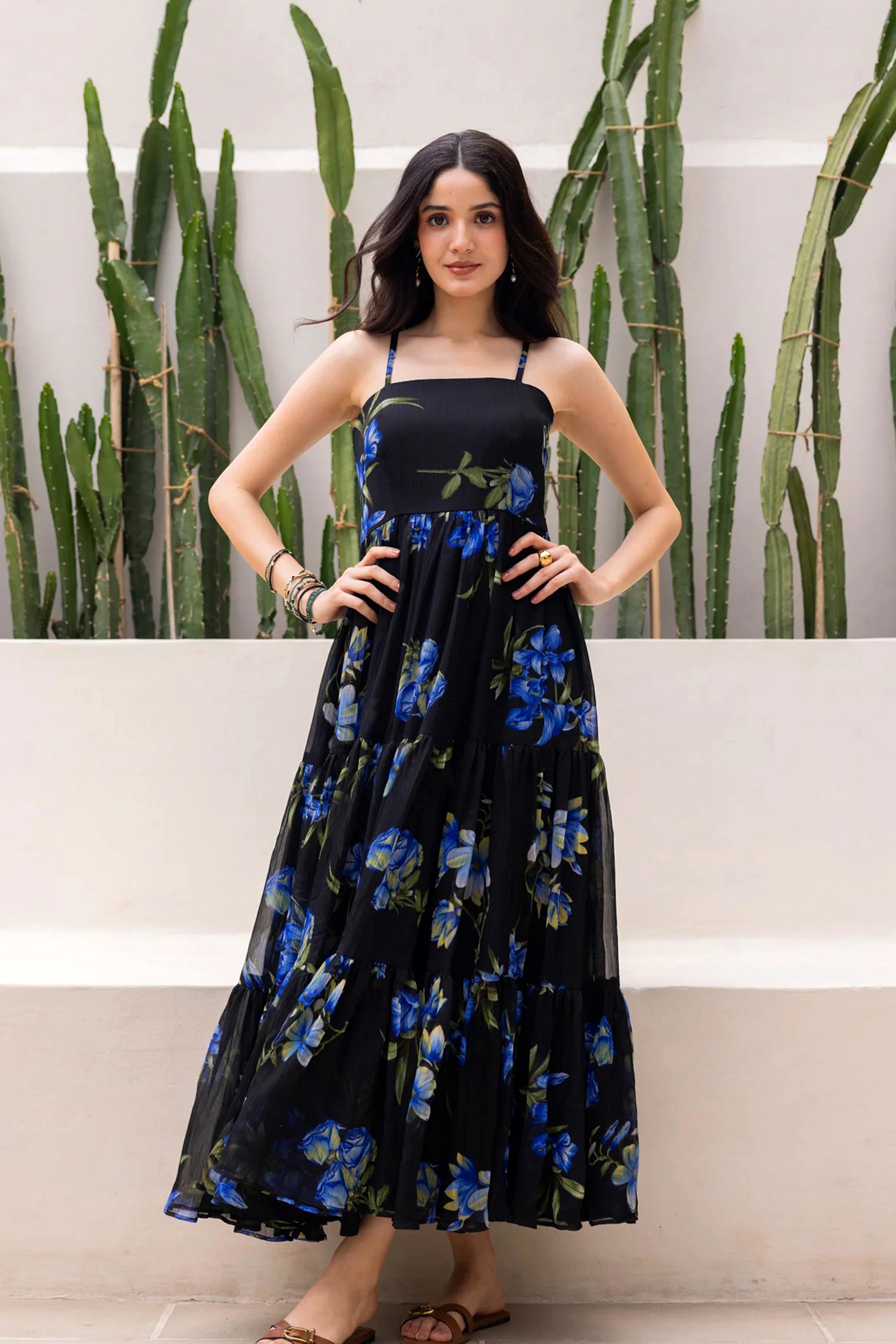 Black Color Beautiful Faux Georgett Fabric Ethnic Festive Wear Girlie Gown