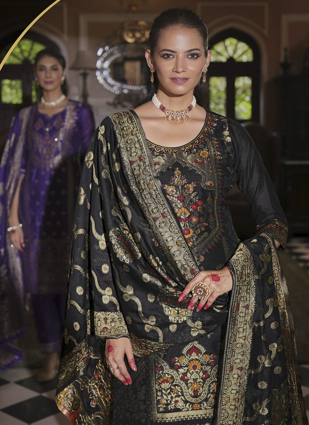 Black Color Ethnic Woven Designer Banarasi Silk Beautiful Readymade Suit
