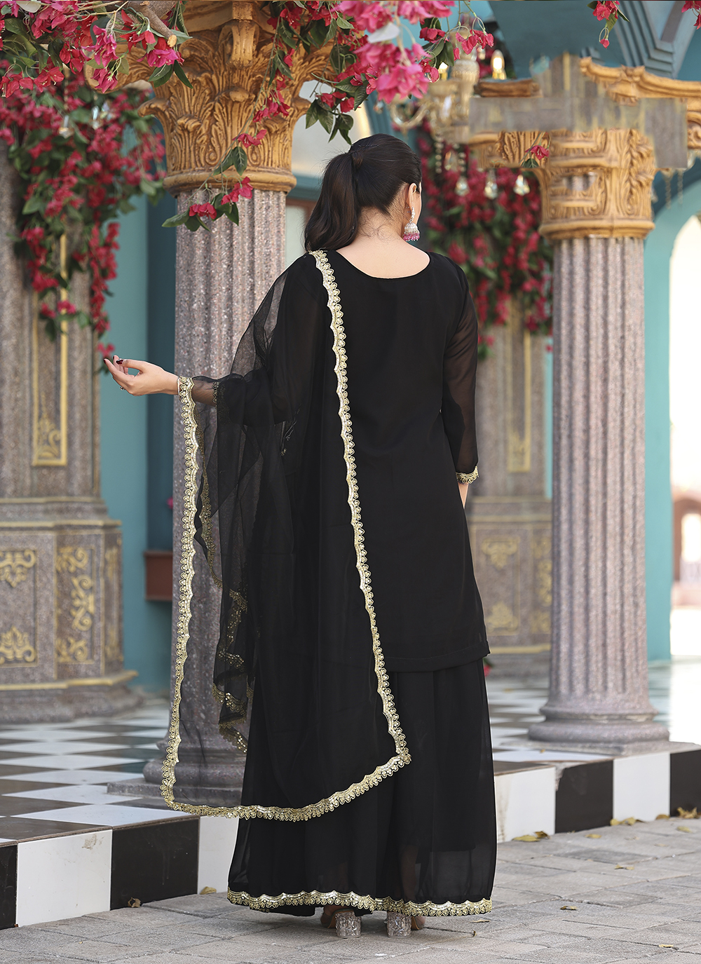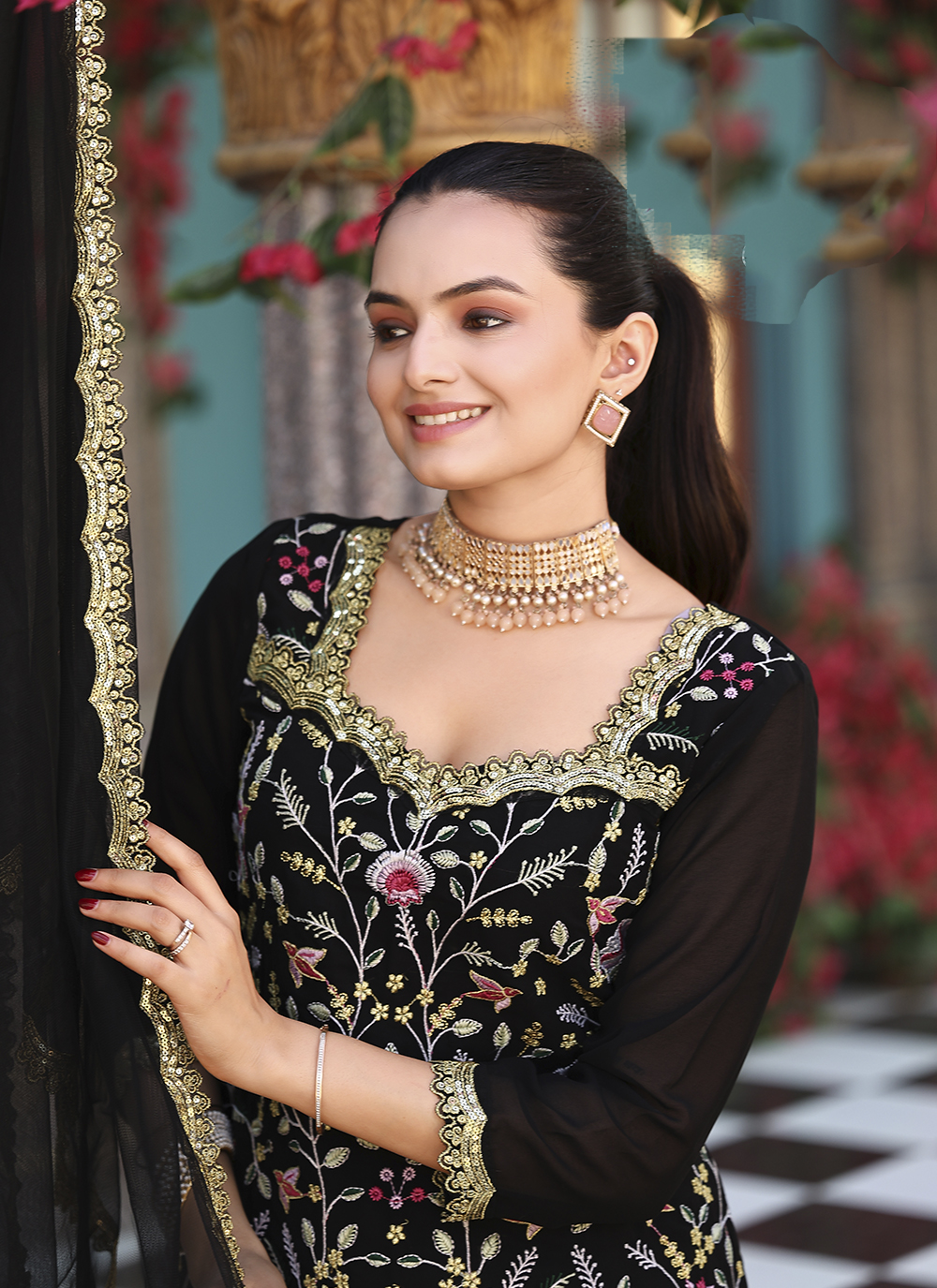 Black Color Georgette Fabric Designer Ceremonial Wear Wedding Attire