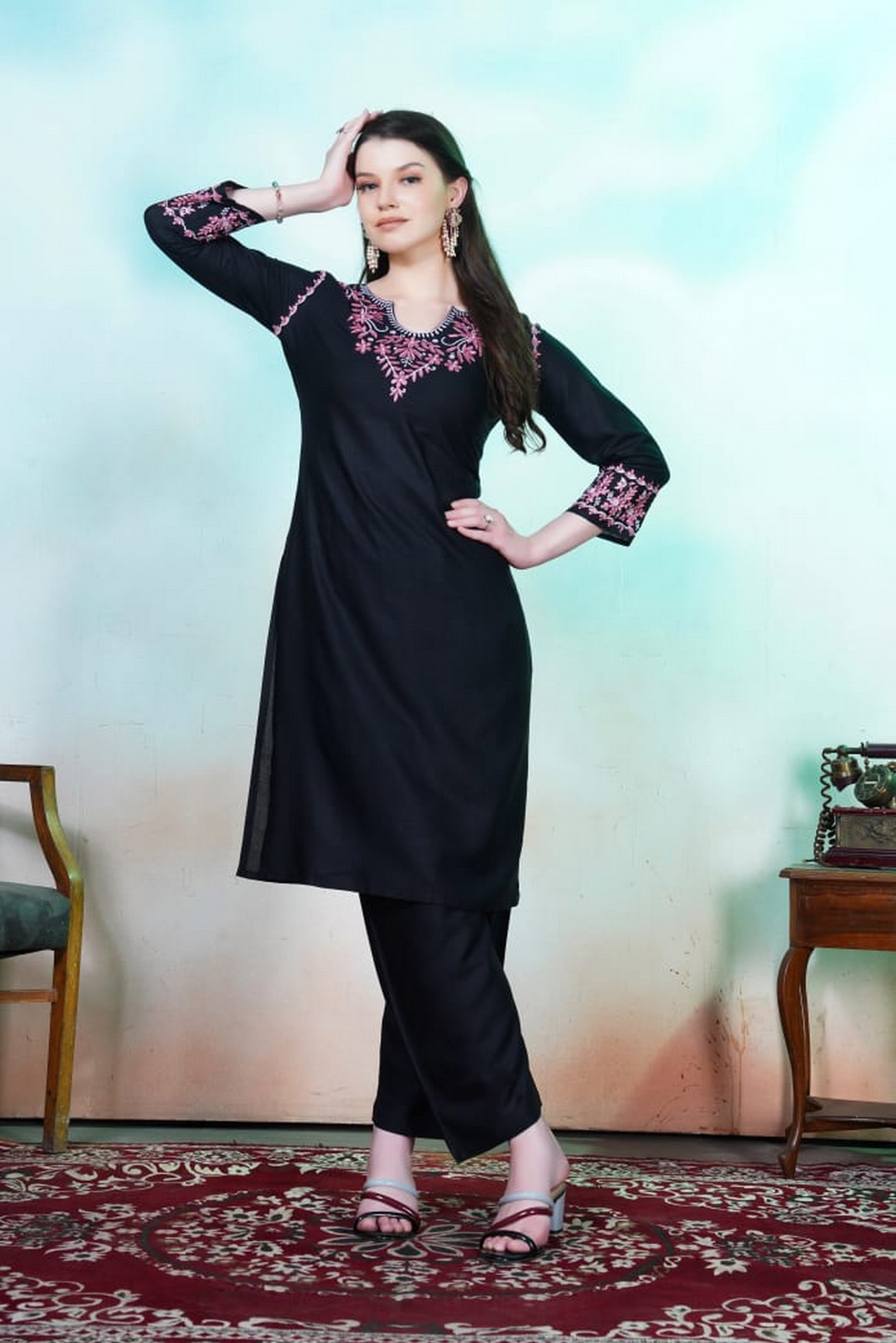 Black Color Rayon Fabric Graceful Ceremonial Kurta Set