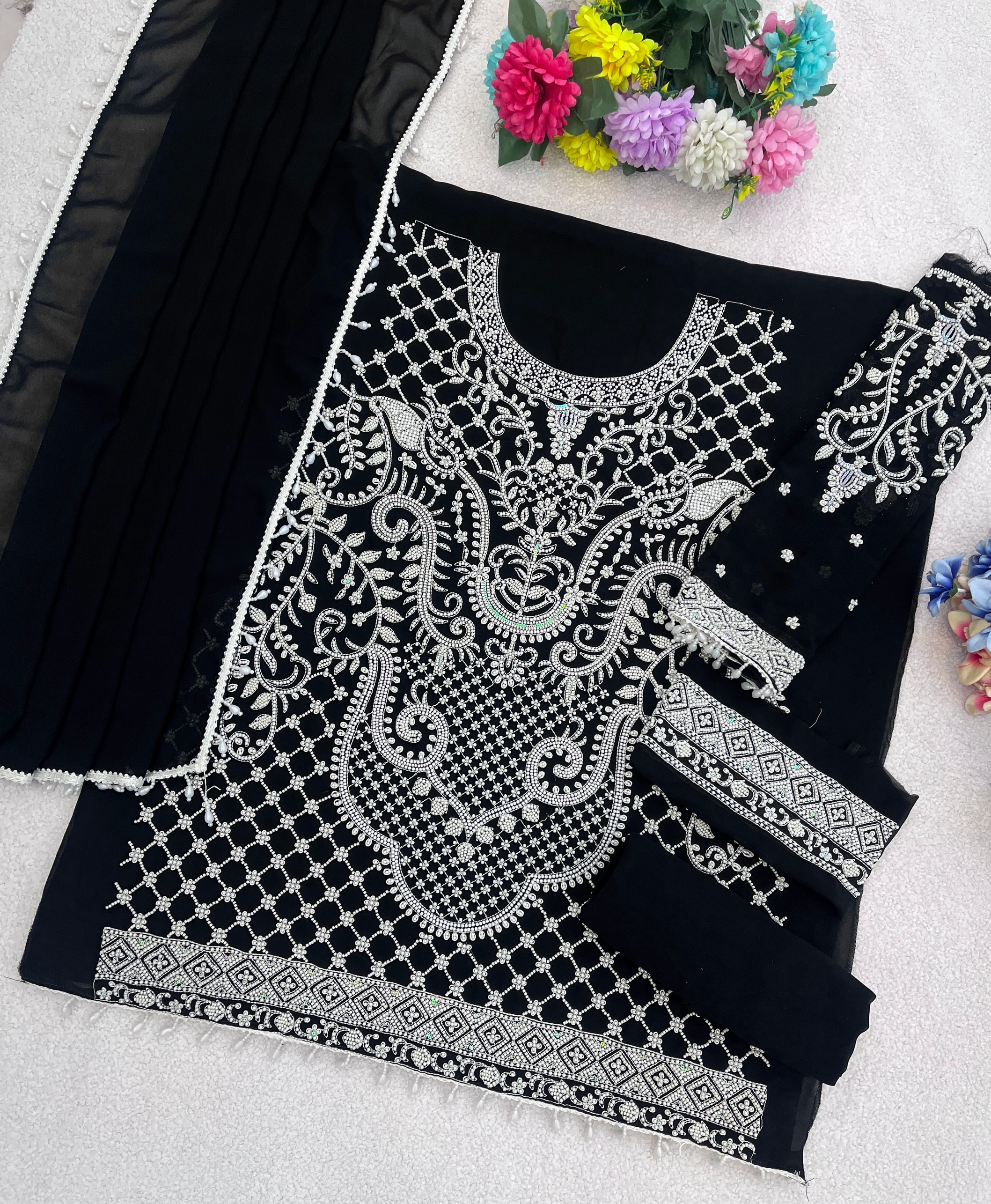 Attractive These Party Wear Semi Stitched Suit in Fine Colored Pair With Dupatta.These Top And Dupatta Are Georgette And Bottom Are Santoon And Pair With Santoon Inner.Its Beautified With Heavy Designer Embroidery Work.