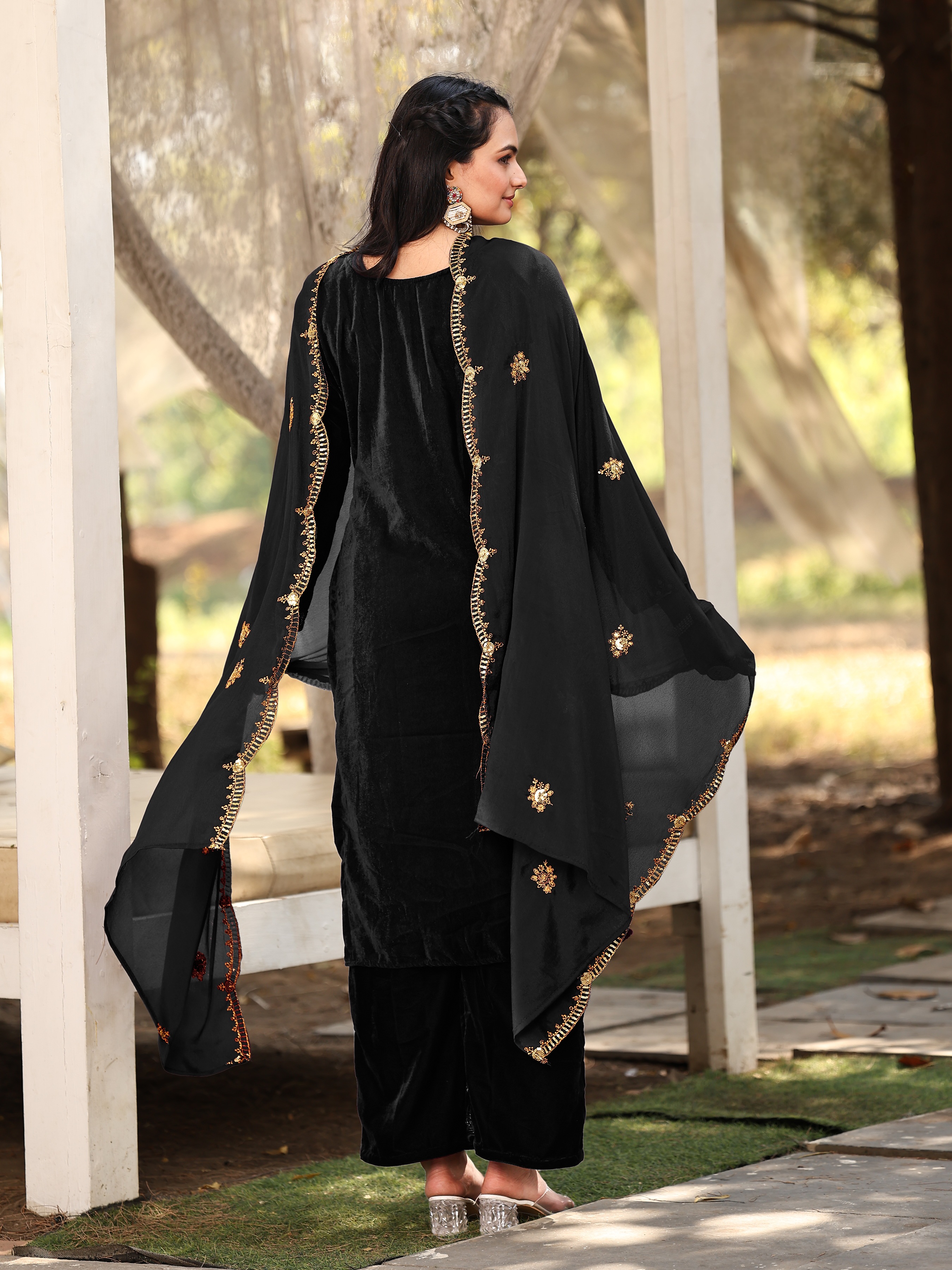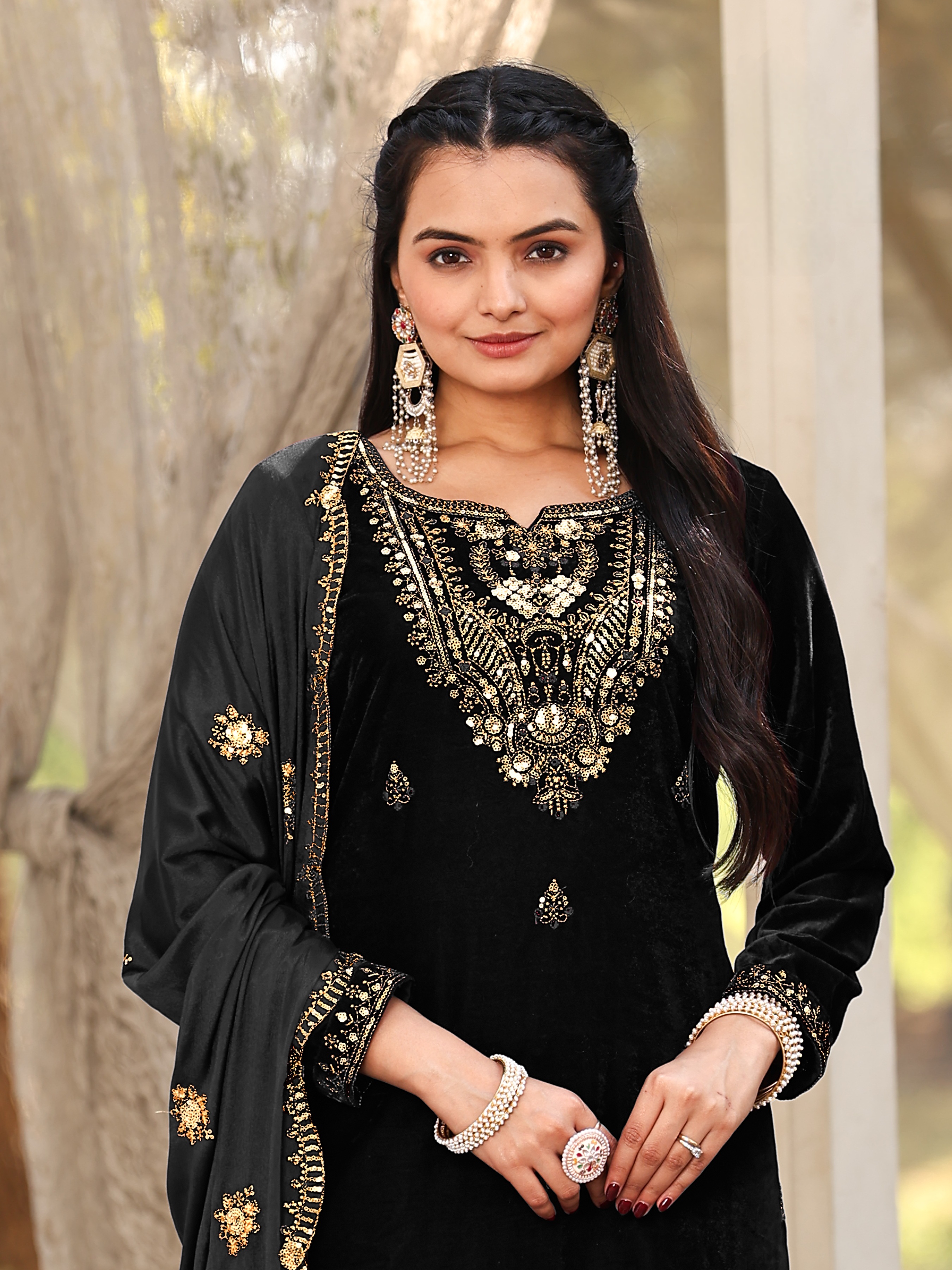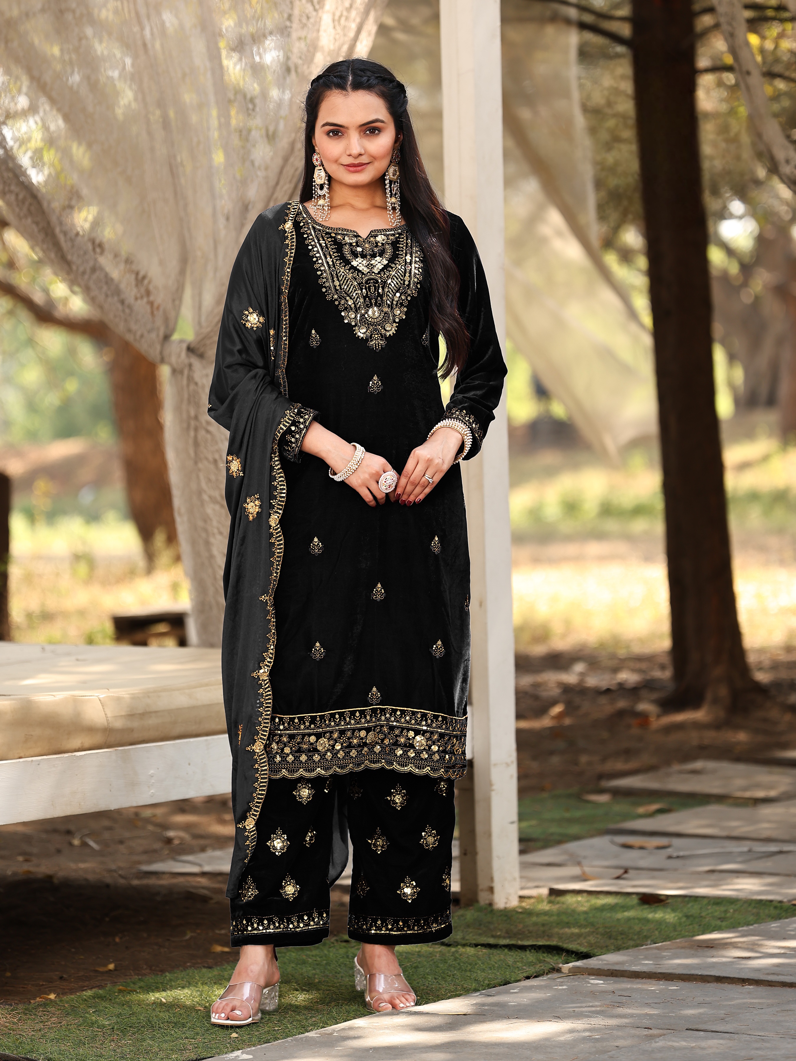 Black Color Sophesticated Designer Embroidered Velvet Suit