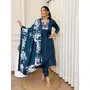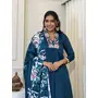 Blue Color Beautiful Ceremonial Chinon Fabric Embroidered Festive Suit