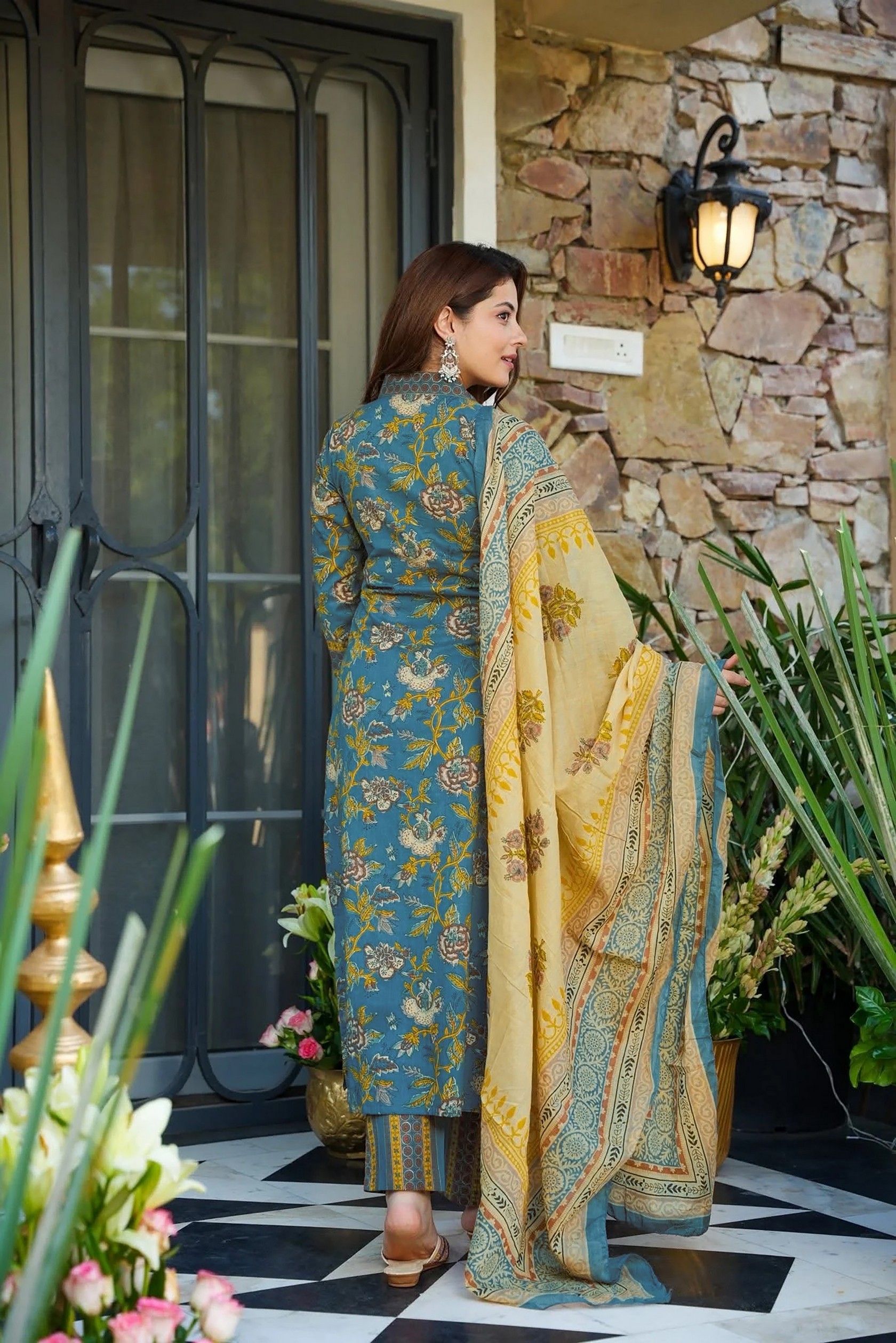 Blue Color Beautiful Printed Muslin Fabric Readymade Palazzo Dress