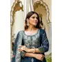 Blue Color Ceremonial Wear Chanderi Cotton Fabric Readymade Kurta Set