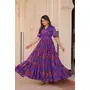 Blue Color Designer Floral Printed Faux Georgette Fabric Ceremonial Gown