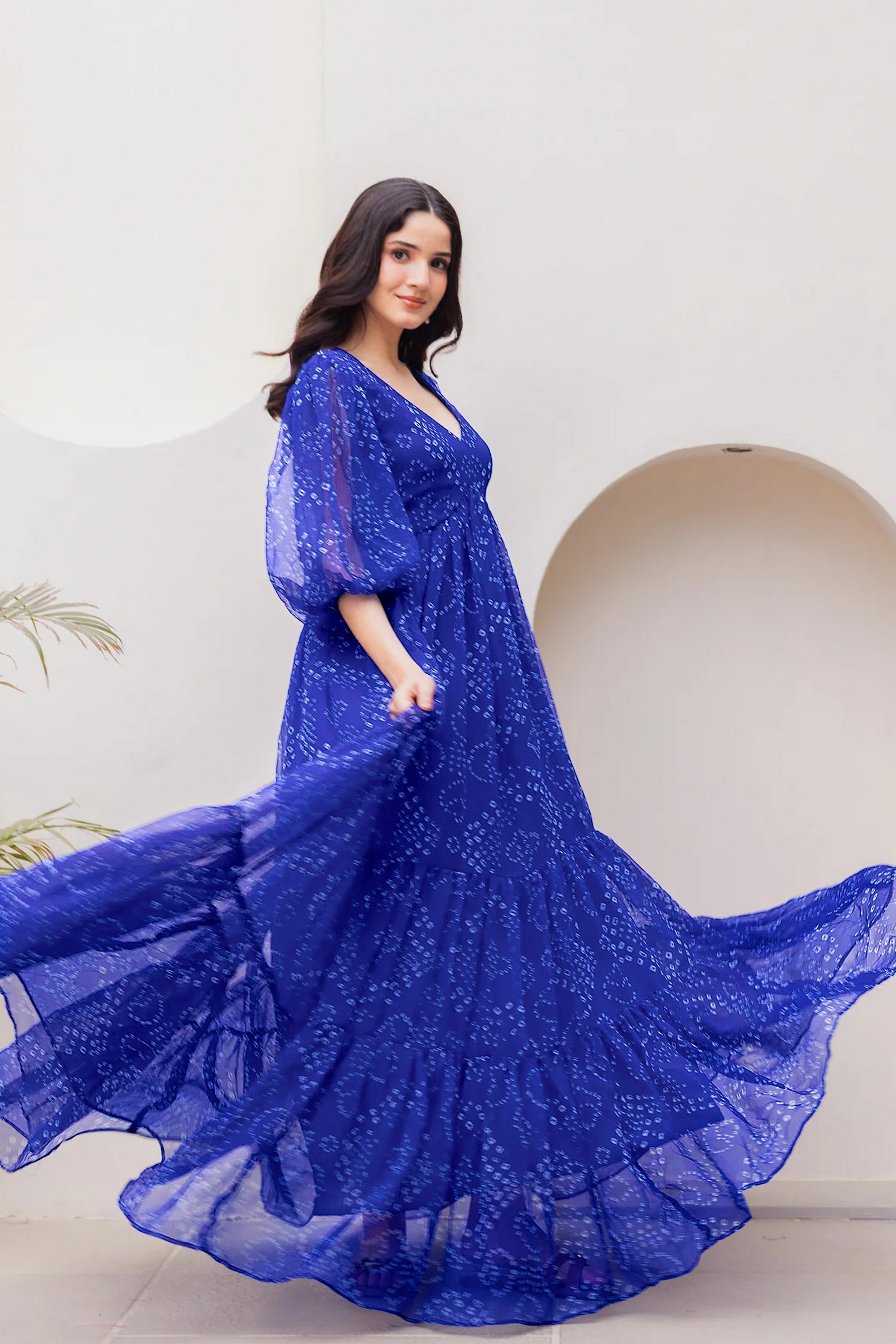 Blue Color Faux Georgett Beautiful Girlie Partywear Ceremonial Gown